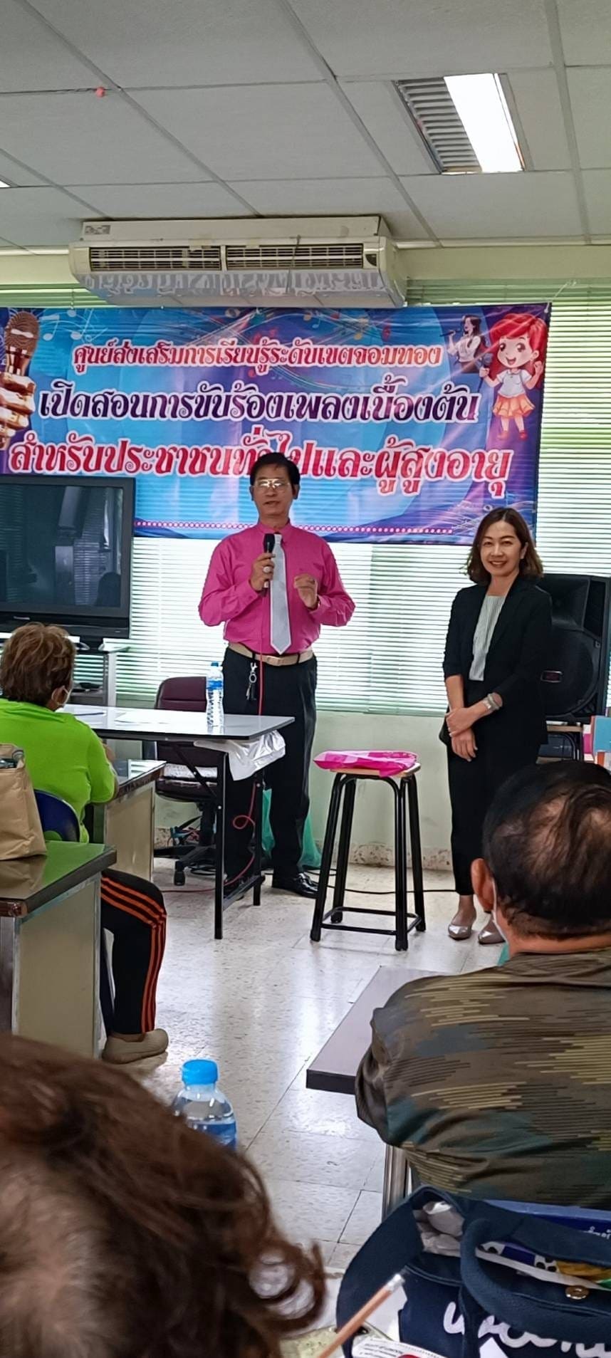 วันที่ 31 สิงหาคม 2567 นางชงโค สุรเวทวงศ์ภาส ผู้อำนวยการศูนย์ส่งเสริมการเรียนรู้ระดับเขตจอมทอง ข้าราชการและคณะครู สกร.ระดับเขตจอมทองดำเนินการจัดกิจกรรมการศึกษาตามอัธยาศัย เรื่อง “การร้องเพลง” ครั้งที่ 3 ดำเนินการสอนโดย อาจารย์บัญชา ธูสรานนท์ (อ.เนื้อทอง) ณ อาคารอเนกประสงค์ ชั้น3 สำนักงานเขตจอมทอง กรุงเทพมหานคร