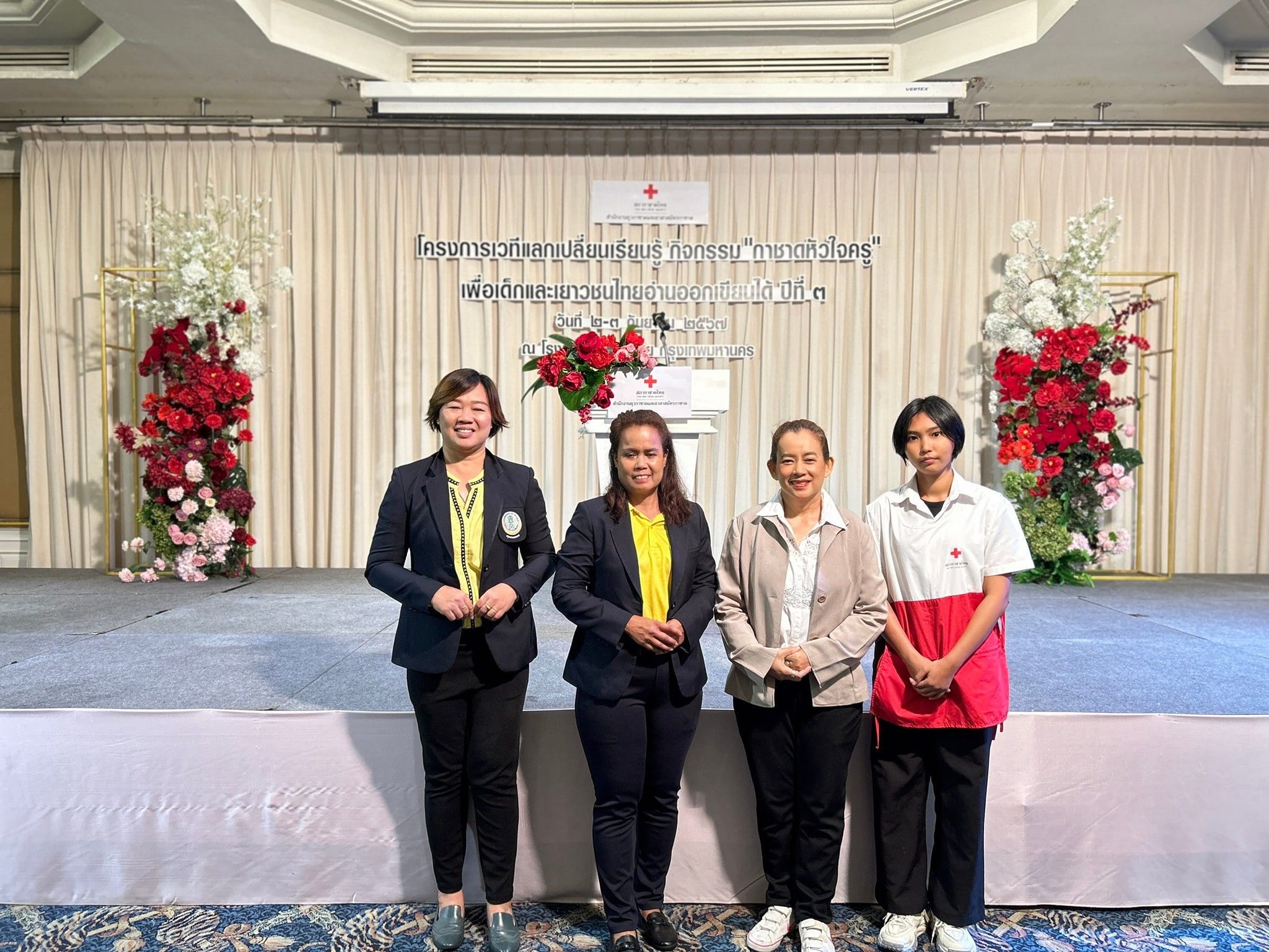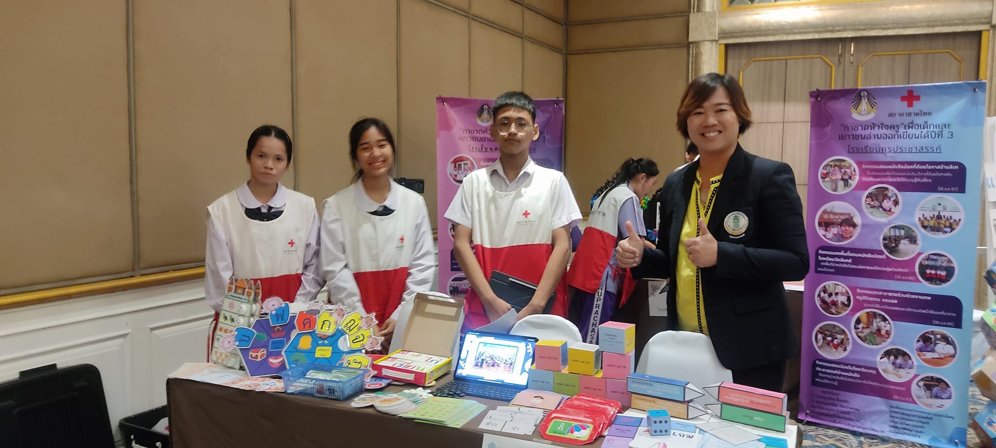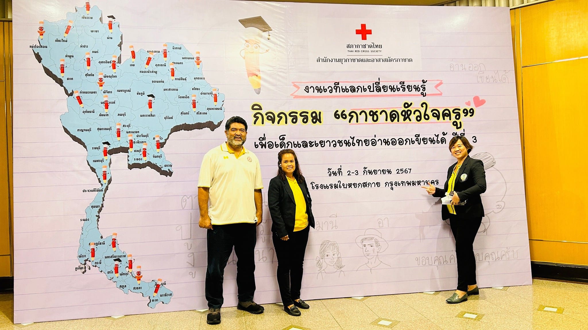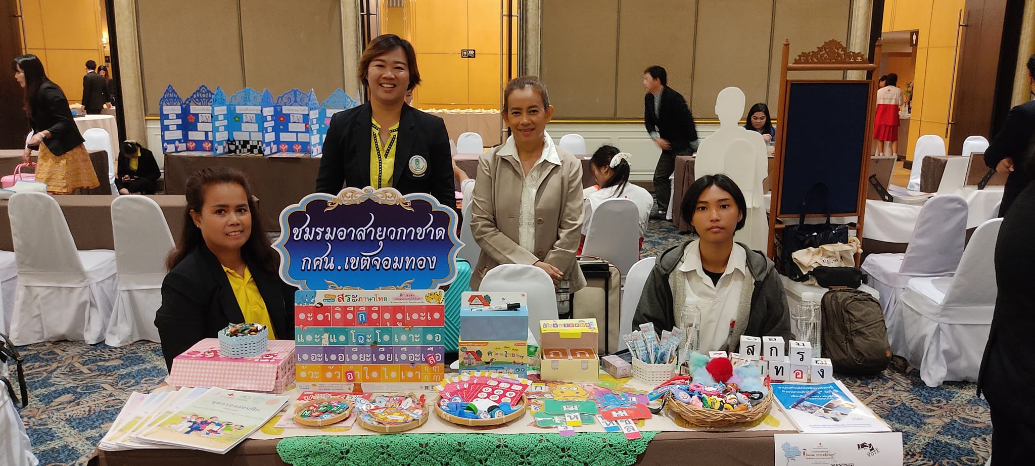 นางชงโค สุรเวทวงศ์ภาส ผู้อำนวยการศูนย์ส่งเสริมการเรียนรู้ระดับเขตจอมทอง มอบหมายให้นางสาวอิงอร เอกนิล นางสาวบัณพร บุญมี นางศิริพร วงษ์บุญส่ง ครู กศน.ตำบล และ นางสาวฉัตรชดา จันทร์ลิลา นักศึกษา สกร.ระดับ เขตจอมทอง เข้าร่วมกิจกรรม “กาชาดหัวใจครู ” เพื่อเด็กและเยาวชนไทยอ่านออกเขียนได้ ปีที่ 3 ณ โรงแรมใบหยกสกาย กรุงเทพมหานคร