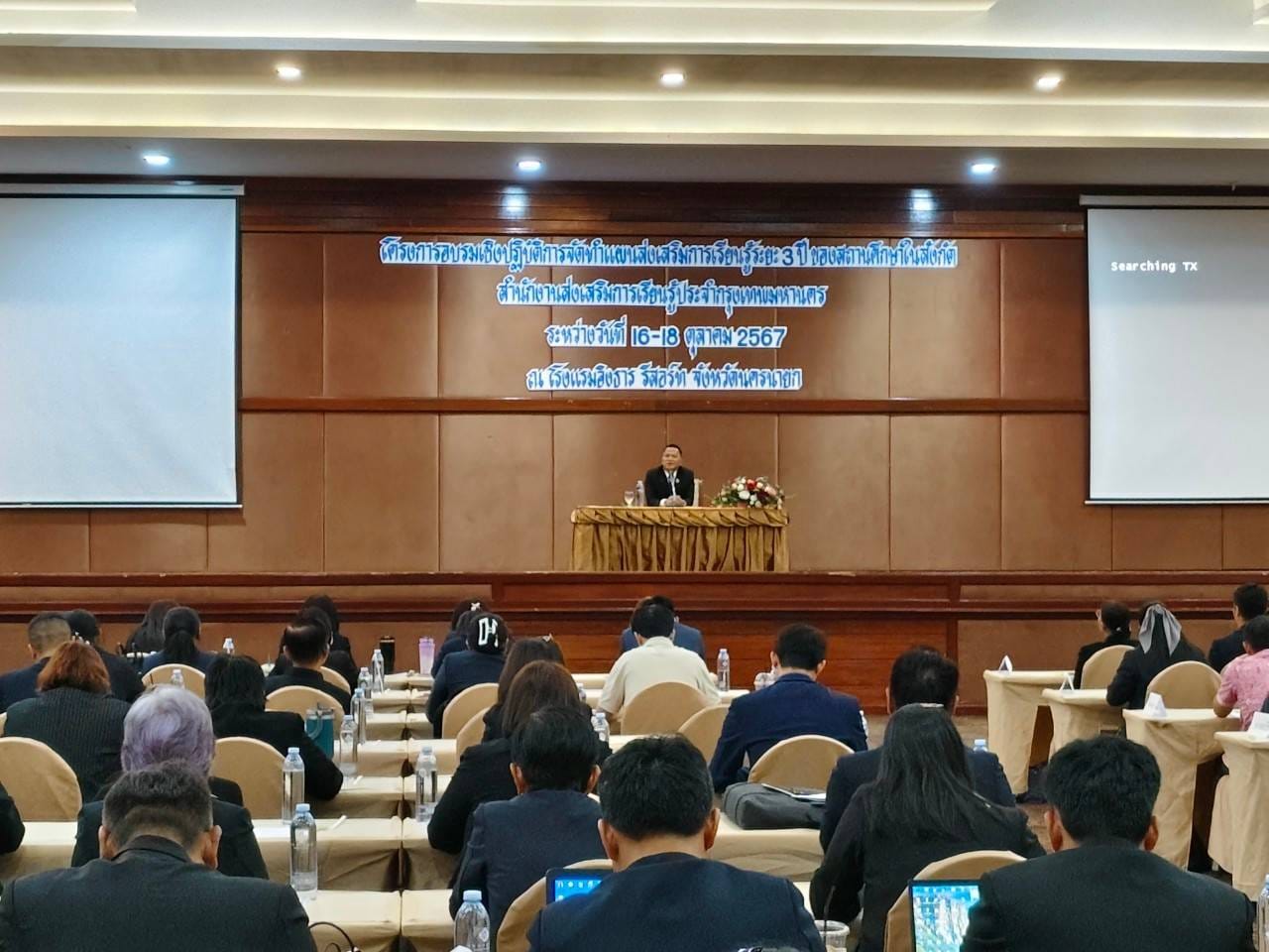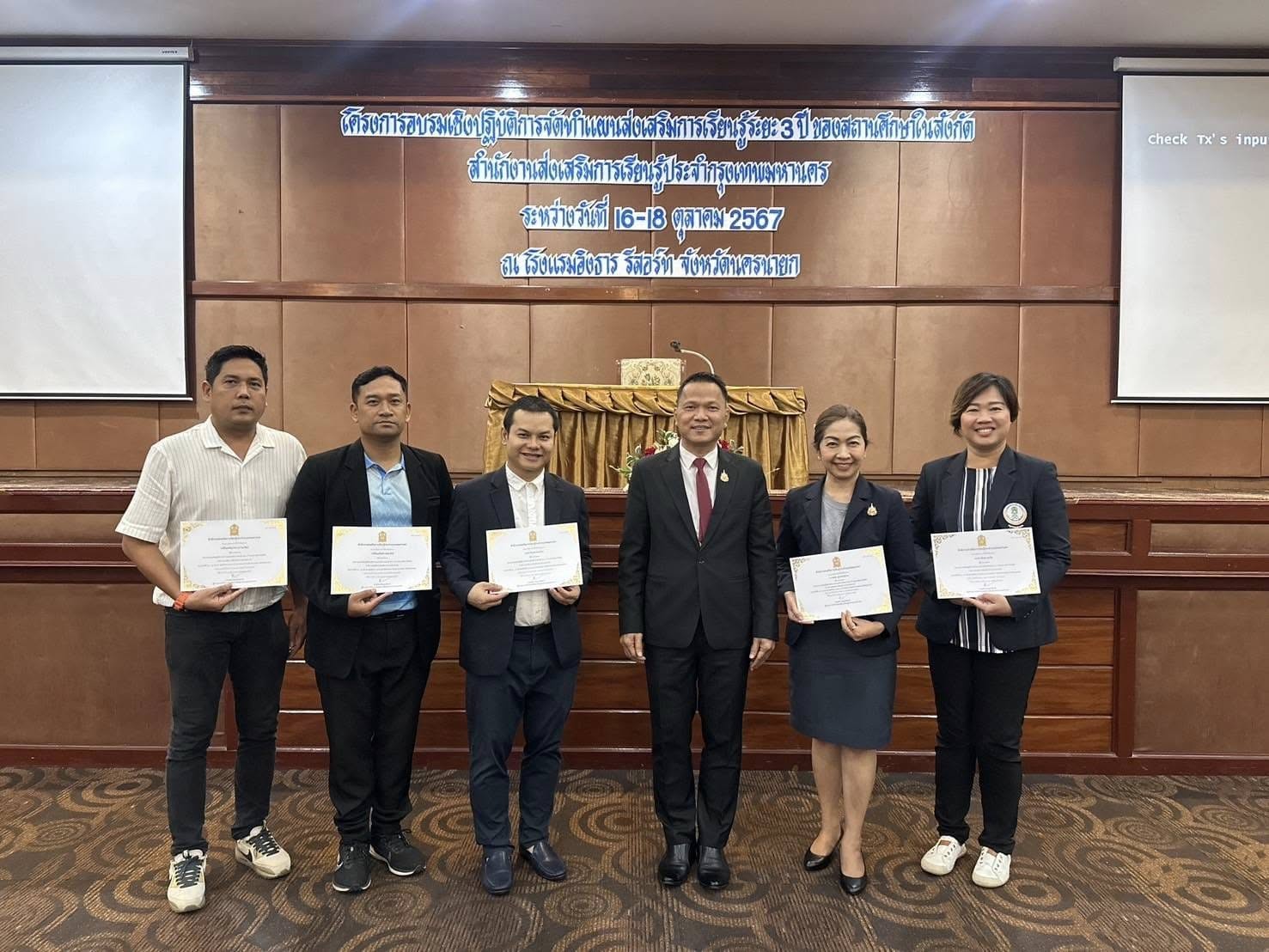 16-18 ตุลาคม 2567 นางชงโค สุรเวทวงศ์ภาส ผู้อำนวยการศูนย์ส่งเสริมการเรียนรู้ระดับเขตจอมทอง นายนิวัฒน์ จันทร์เทศ ว่าที่ ร.ต. อุทัย พลมารักษ์ ข้าราชการครู นางสาวอิงอร เอกนิเล และ ว่าที่ ร.ต.ศุภโชค สุวรรณวัฒน์ ครู กศน.ตำบล เข้าร่วมโครงการอบรมเชิงปฏิบัติการจัดทำแผนส่งเสริมการเรียนรู้ระยะ 3 ปี ของสถานศึกษาในสังกัดสำนักงานส่งเสริมการเรียนรู้ประจำกรุงเทพมหานคร ระหว่างวันที่ 16 - 18 ตุลาคม 2567 ณ โรงแรมอิงธาร รีสอร์ท จังหวัดนครนายก