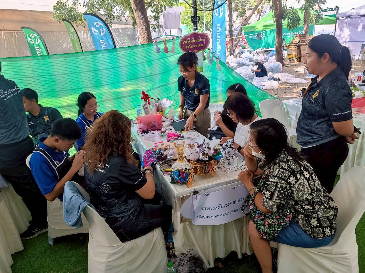 11 ธันวาคม 2568 นางสาวบุสรา นิลเต๊ะ ผู้อำนวยการศูนย์ส่งเสริมการเรียนรู้ระดับ เขตบางบอน รักษาการในตำแหน่ง ผู้อำนวยการศูนย์ส่งเสริมการเรียนรู้ระดับเขตจอมทอง มอบหมายให้ นางสาวอิงอร เอกนิล นางศิริพร วงษ์บุญส่ง และนางสาวศิริรัตน์ ลีสินลา เข้าร่วมกิจกรรมการออกร้านงานกาชาด ประจำปี 2568 โดยศูนย์ส่งเสริมการเรียนรู้ระดับเขตจอมทองนำตุ๊กตาหอมหลากสไตล์ เพื่อส่งเสริมทักษะอาชีพให้แก่ประชาชนที่สนใจ ณ สวนลุมพินี กรุงเทพมหานคร