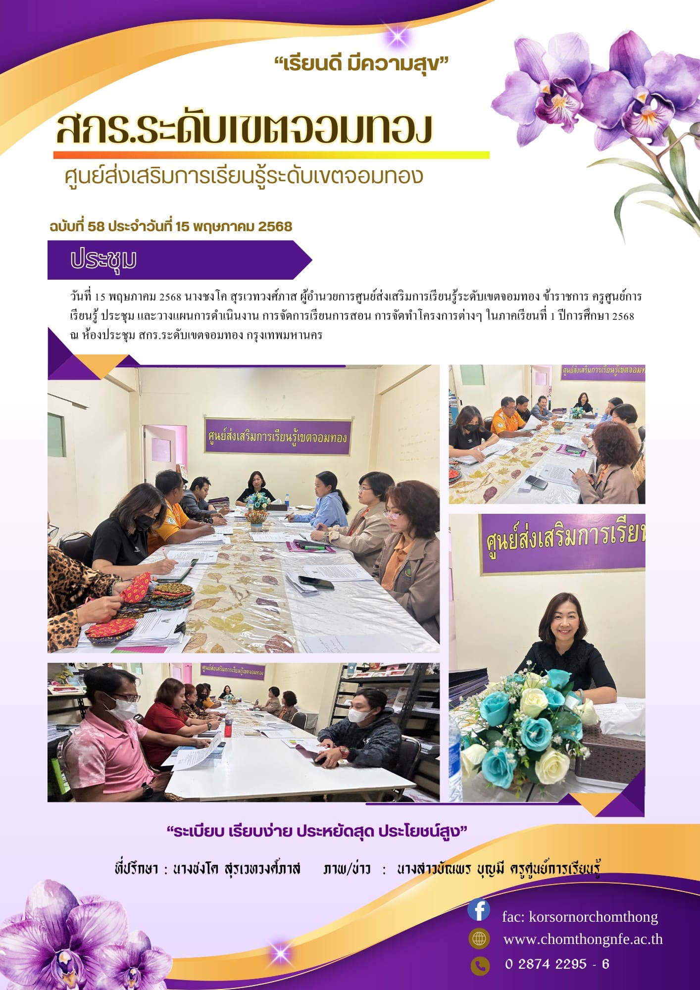 15 พฤษภาคม 2568 นางชงโค สุรเวทวงศ์ภาส ผู้อำนวยการศูนย์ส่งเสริมการเรียนรู้ระดับเขตจอมทอง ข้าราชการ คร