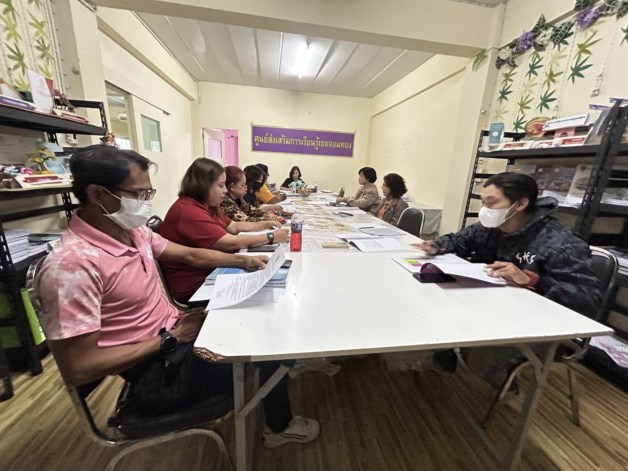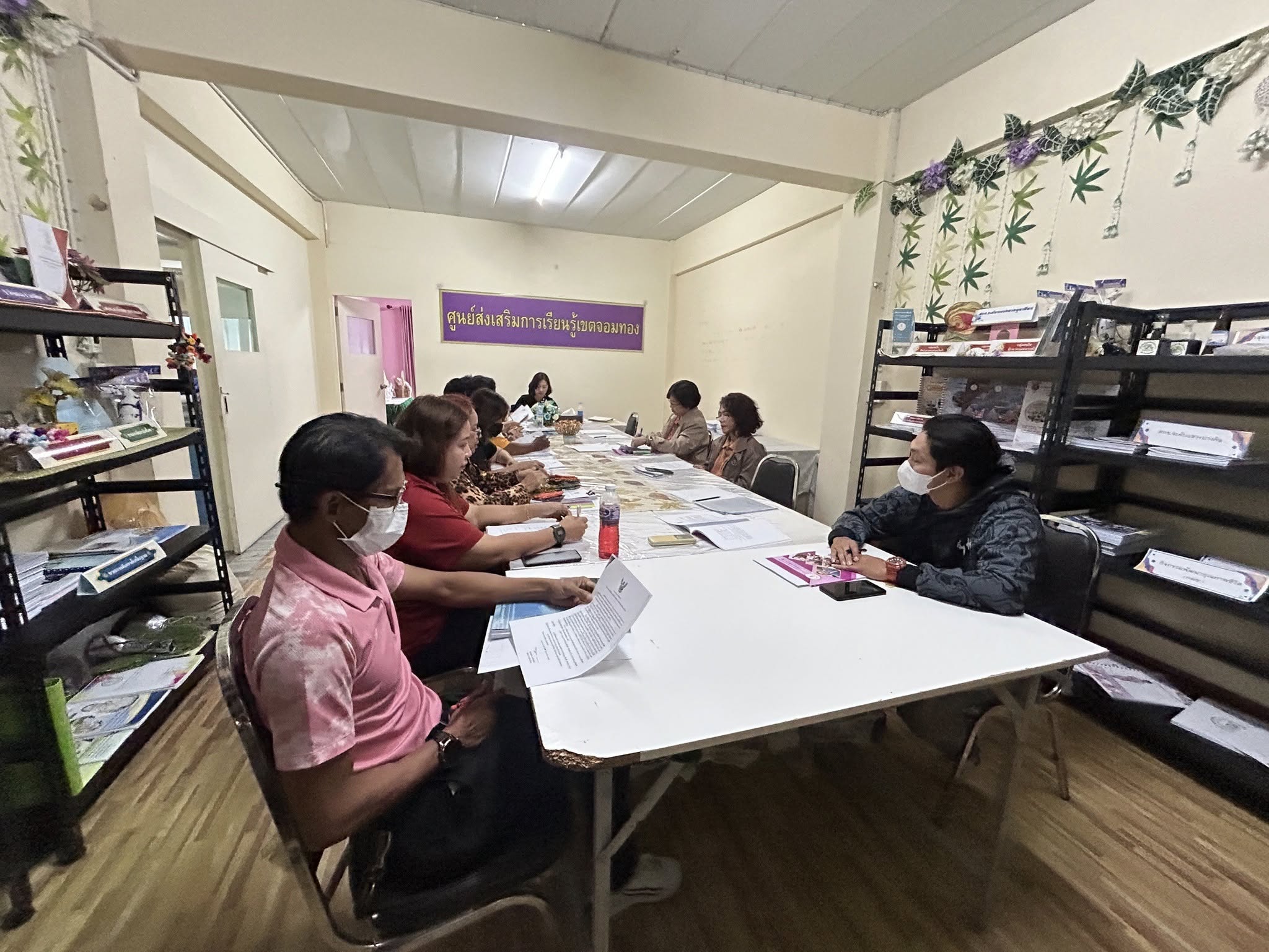 15 พฤษภาคม 2568 นางชงโค สุรเวทวงศ์ภาส ผู้อำนวยการศูนย์ส่งเสริมการเรียนรู้ระดับเขตจอมทอง ข้าราชการ ครูศูนย์การเรียนรู้ ประชุม และวางแผนการดำเนินงาน การจัดการเรียนการสอน การจัดทำโครงการต่างๆ ในภาคเรียนที่ 1 ปีการศึกษา 2568 ณ ห้องประชุม สกร.ระดับเขตจอมทอง กรุงเทพมหานคร