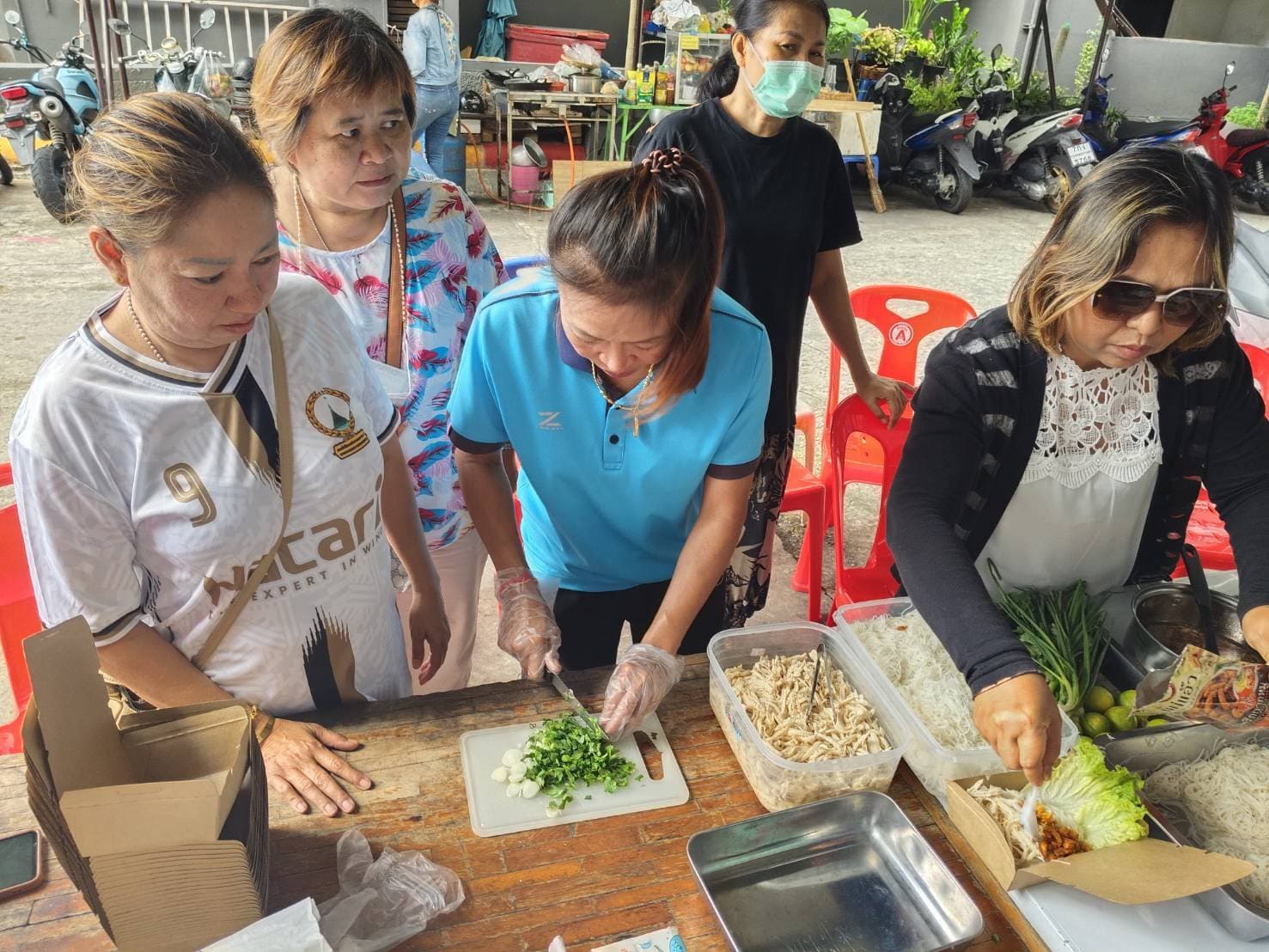 13 มิถุนายน 2568 นางชงโค สุรเวทวงศ์ภาส ผู้อำนวยการศูนย์ส่งเสริมการเรียนรู้ระดับเขตจอมทอง มอบหมายให้นางสาวสุนารี ศรีรัตน์ ครูศูนย์การเรียนรู้จัดโครงการศูนย์ฝึกอาชีพชุมชน(กลุ่มสนใจ) ไตรมาส 3 - 4 ประจำปีงบประมาณ 2568 วิชาการทำหมี่ไก่ฉีก ณ ชุมชน บกน.9 แขวงบางมด เขตจอมทอง กรุงเทพมหานคร