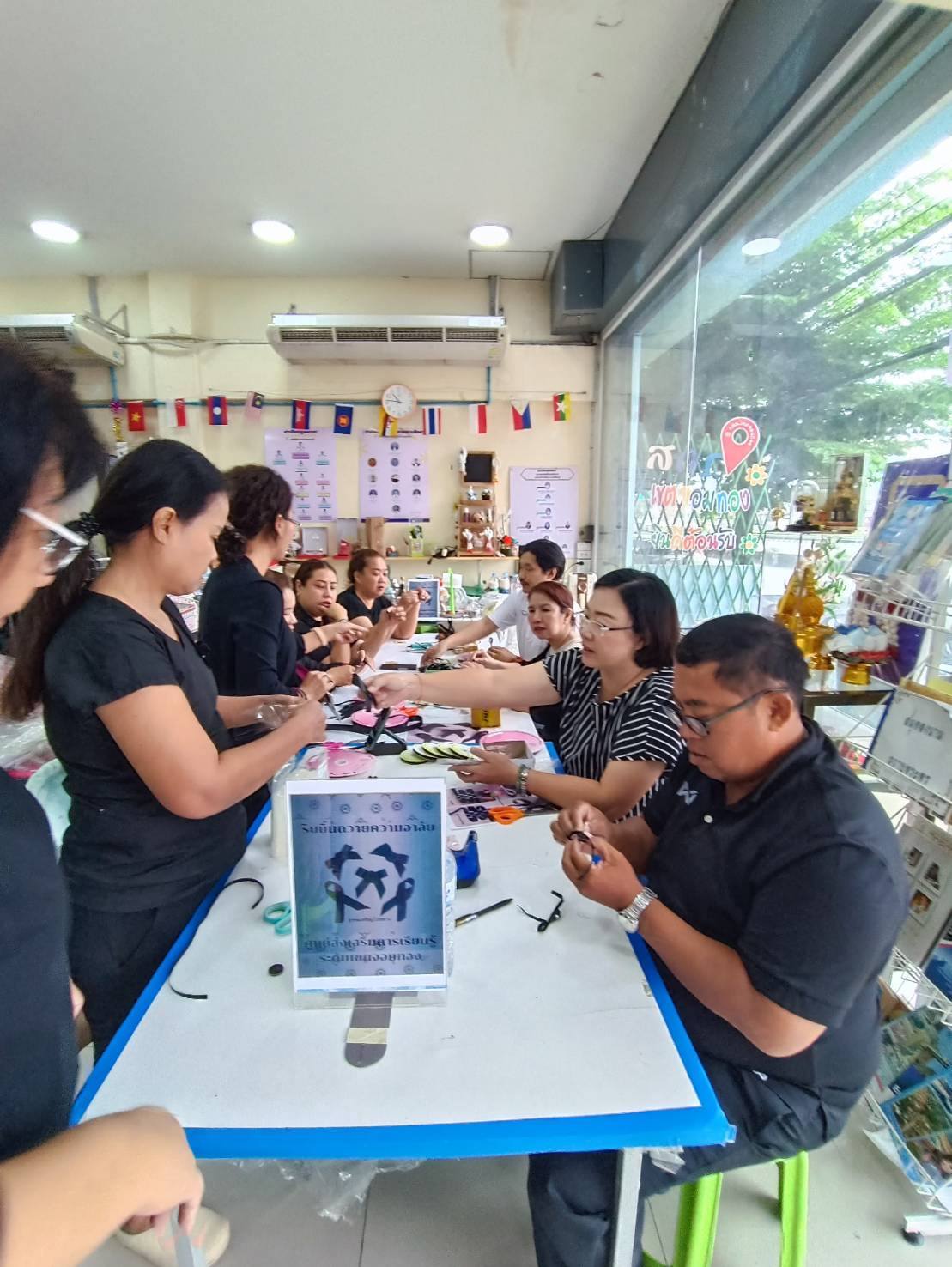13 พฤศจิกายน 2568 นายนิวัฒน์ จันทร์เทศ ครูชำนาญการ รักษาการในตำแหน่ง ผู้อำนวยการศูนย์ส่งเสริมการเรียนรู้ระดับเขตจอมทอง ว่าที่ ร.ต. อุทัย พลมารักษ์ ข้าราชการครู และคณะครูศูนย์การเรียนรู้ ร่วมจัดทำริบบิ้นไว้อาลัย จำนวน 300 ชิ้น และแจกให้กับประชาชน จำนวน 200 ชิ้นเพื่อระลึกถึงสมเด็จพระพันปีหลวง ทั้งสอนนักศึกษา และประชาชนในชุมชนเขตจอมทอง