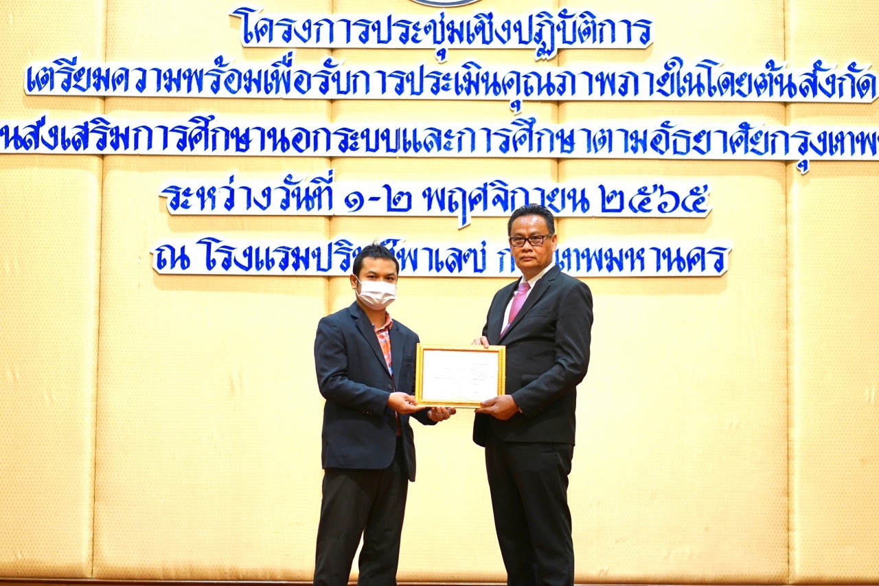 2. กศน.ตำบลต้นแบบ ๕ ดี พรีเมี่ยม ระดับอำเภอ/เขต ประจำปีพุทธศักราช ๒๕๖๕ แก่ กศน.แขวงบางมด เขตจอมทอง กรุงเทพมหานคร ณ โรงแรมปรินซ์พาเลซ กรุงเทพมหานคร