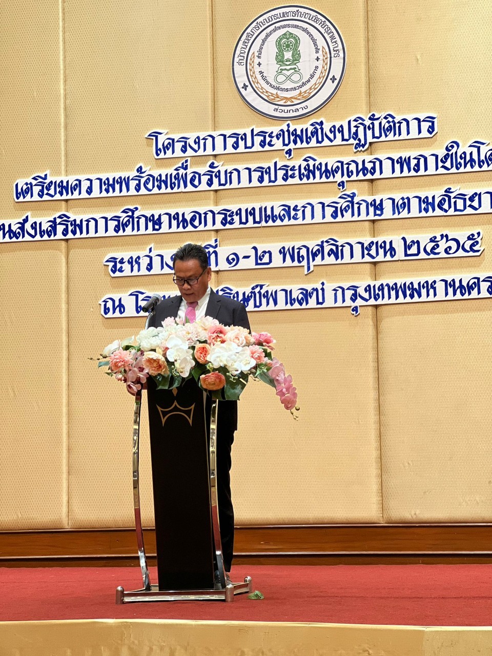 วันที่ 1-2 พฤศจิกายน 2565 โครงการประชุมเชิงปฏิบัติการเตรียมความพร้อมเพื่อรับการประเมินคุณภาพภายในโดยต้นสังกัดสำนักงานส่งเสริมการศึกษานอกระบบและการศึกษาตามอัธยาศัยกรุงเทพมหานคร