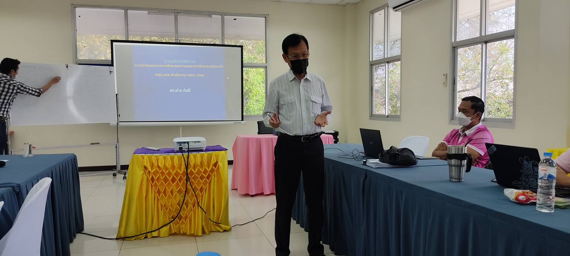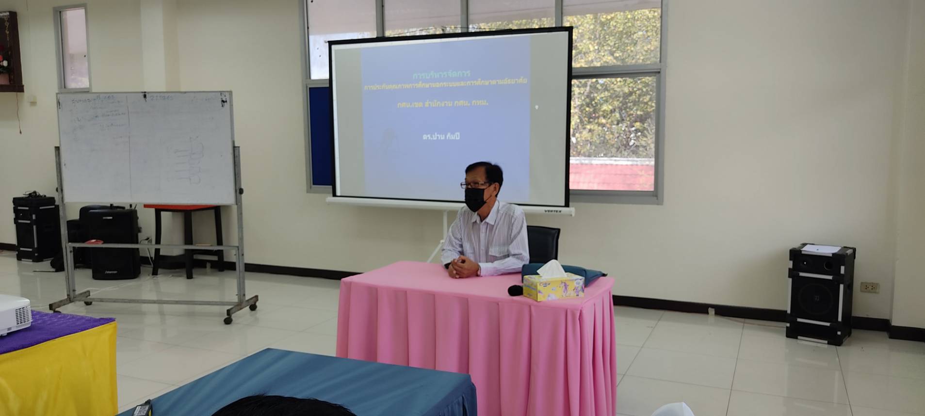 นางสาวบุสรา นิลเต๊ะ ผู้อำนวยการ กศน.เขตบางบอน รักษาการในตำแหน่ง ผู้อำนวยการ กศน.เขตจอมทอง จัดโครงการอบรมการบริหารจัดการการประกันคุณภาพการศึกษานอกระบบและการศึกษาตามอัธยาศัย (Self-Assessment Report : SAR ) ระยะที่ 2 ให้กับ ข้าราชการ และคณะครู ของ กศน.เขตจอมทอง โดยได้รับเกียรติจาก ดร.ปาน กิมปี เป็นวิทยากร