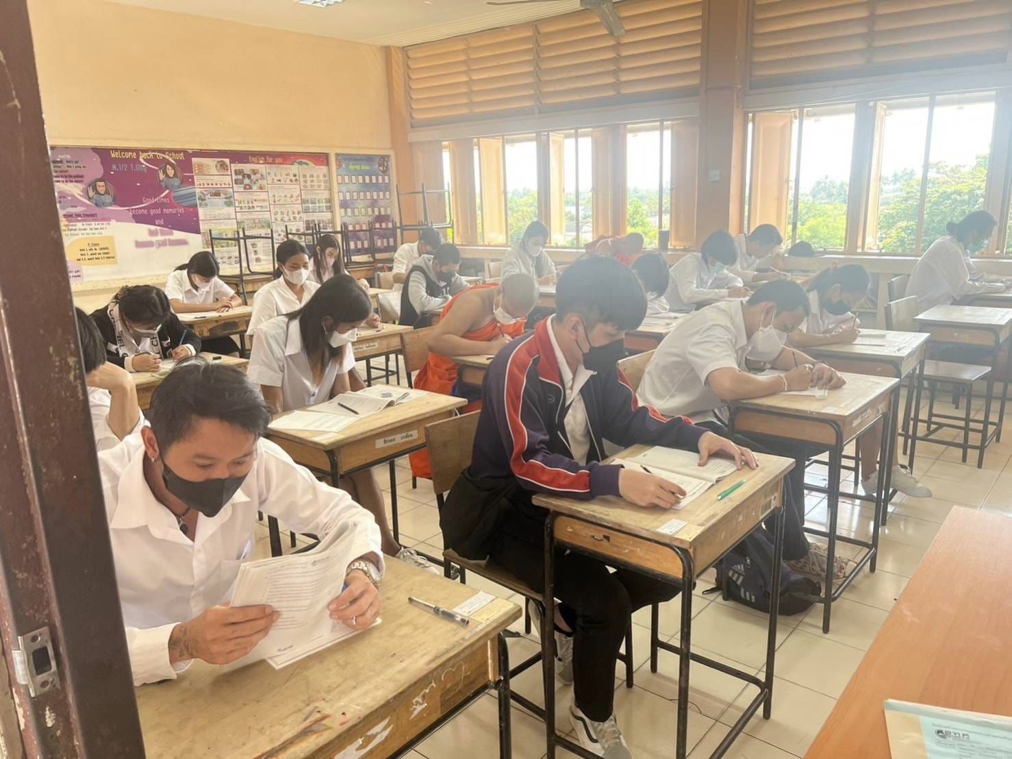 วันอาทิตย์ที่ 5 กุมภาพันธ์ 2566 นางสาวบุสรา นิลเต๊ะ ผู้อำนวยการ กศน.เขตบางบอน รักษาการในตำแหน่ง ผู้อำนวยการ กศน.เขตจอมทอง ข้าราชการ และคณะครู ดำเนินการจัดสอบวัดผลสัมฤทธิ์การทดสอบการศึกษา ระดับชา