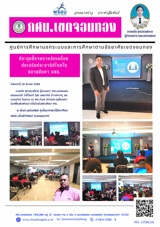 วันอังคารที่ 28 มีนาคม 2566 นางชงโค สุรเวทวงศ์ภาส ผู้อำนวยการ กศน.เขตจอมทอง มอบหมายให้ ว่าที่