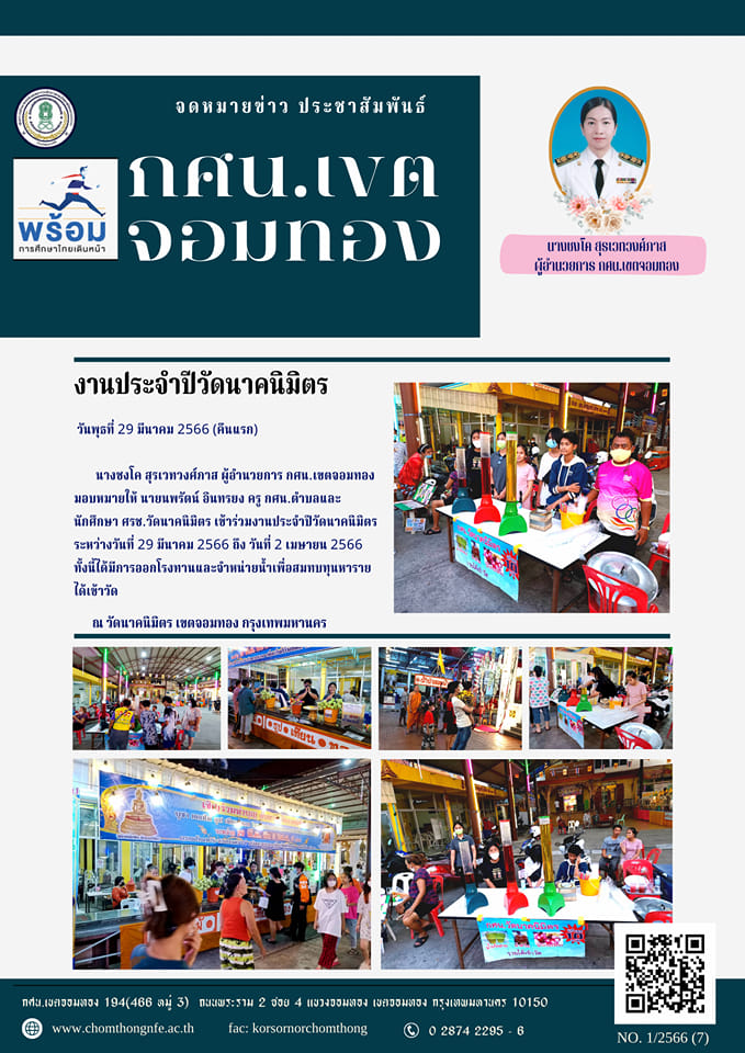 วันพุธที่ 29 มีนาคม 2566 (คืนแรก) นางชงโค สุรเวทวงศ์ภาส ผู้อำนวยการ กศน.เขตจอมทอง มอบหมายให้