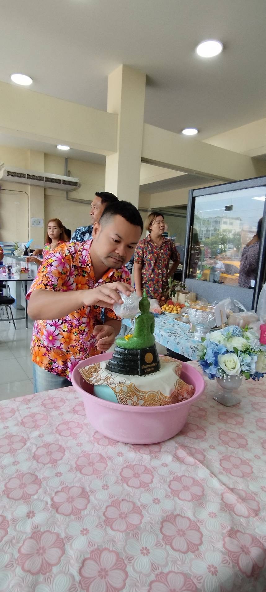 วันพฤหัสบดีที่ 20 เมษายน 2566 นางชงโค นางชงโค สุรเวทวงศ์ภาส ผู้อำนวยการ กศน.เขตจอมทอง ข้าราชการ และคณะครู ร่วมสืบสานประเพณีไทย สรงน้ำพระ ในโอกาสนี้ ข้าราชการ และคณะครู ได้ร่วมรด