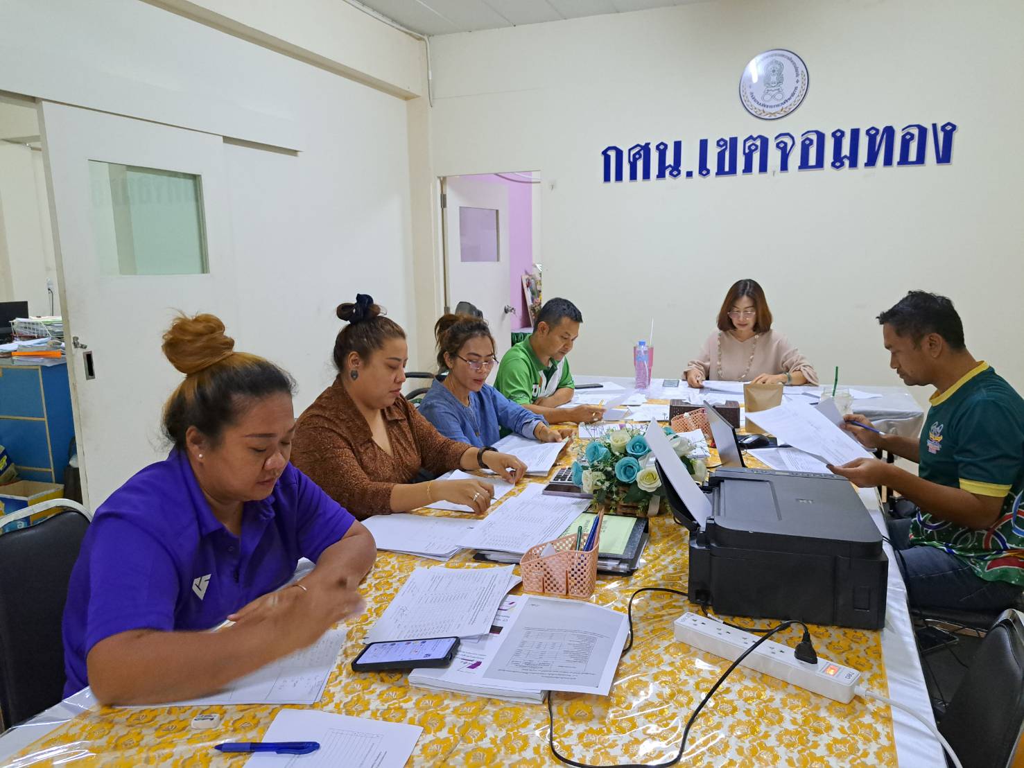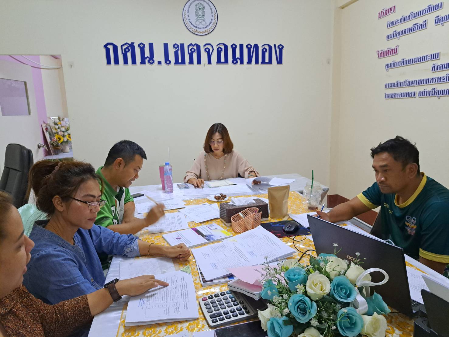 วันพฤหัสบดีที่ 27 เมษายน 2566 นางชงโค สุรเวทวงศ์ภาส ผู้อำนวยการ กศน.เขตจอมทอง ข้าราชการ และคณะครู กลุ่มแผนและการเงิน ประชุมสรุปผลการดำเนินงาน และการใช้จ่ายงบประมาณ ไตรมาส 1-2 รวมทั้งวางแผนการดำเนิน