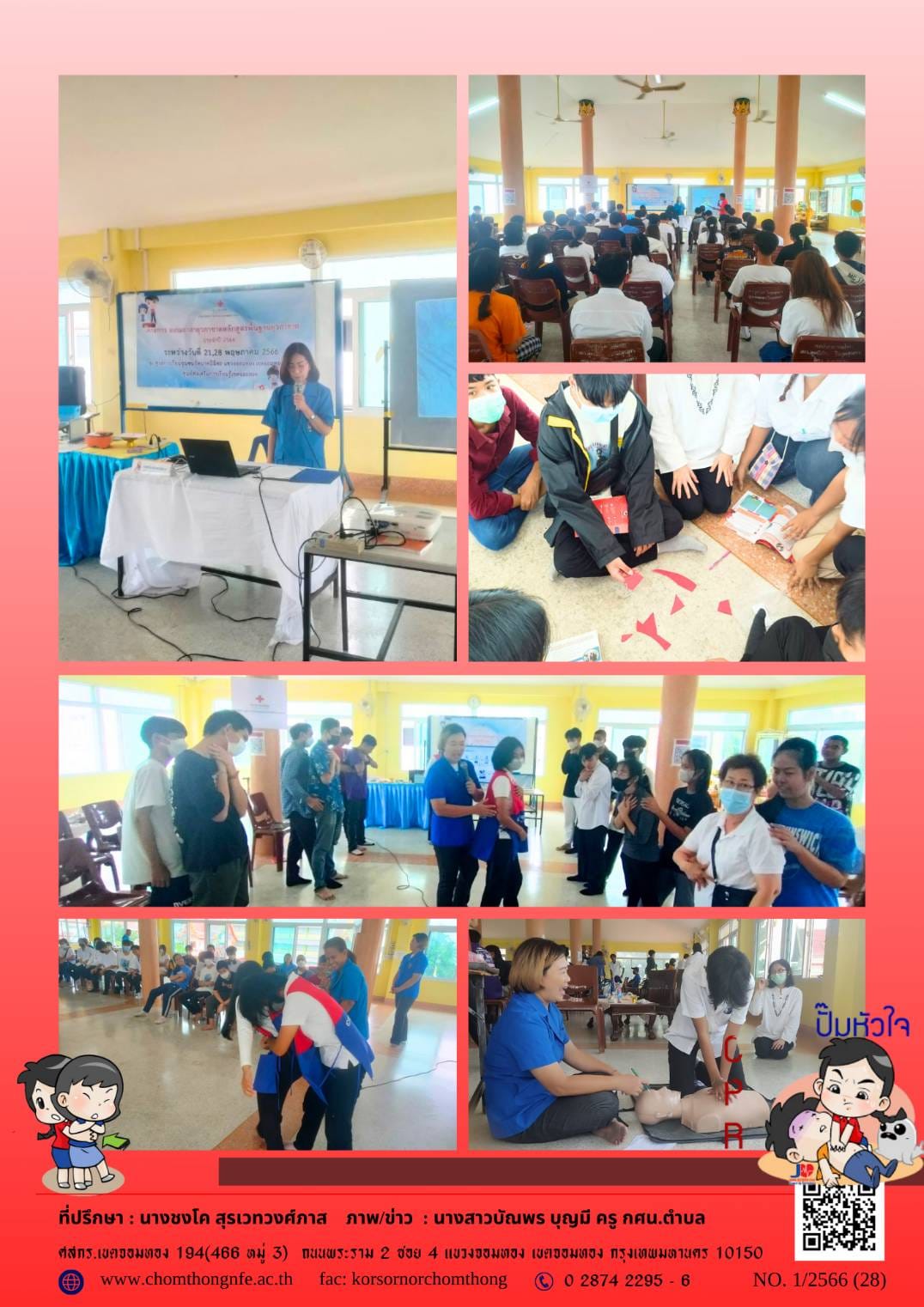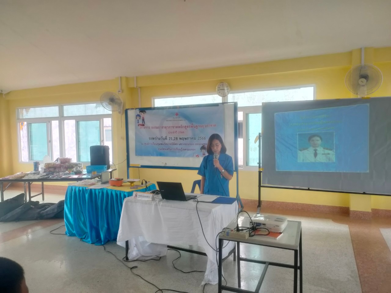 วันอาทิตย์ที่ 28 พฤษภาคม 2566 นางชงโค สุรเวทวงศ์ภาส ผู้อำนวยการ ศสกร.เขตจอมทอง มอบหมายให้ ข้าราชการครู และคณะครู กศน.ตำบล จัดโครงการอบรมอาสายุวกาชาดหลักสูตรพื้นฐานยุวกาชาด ณ ศูนย์การเรียนชุมชนวัดนา