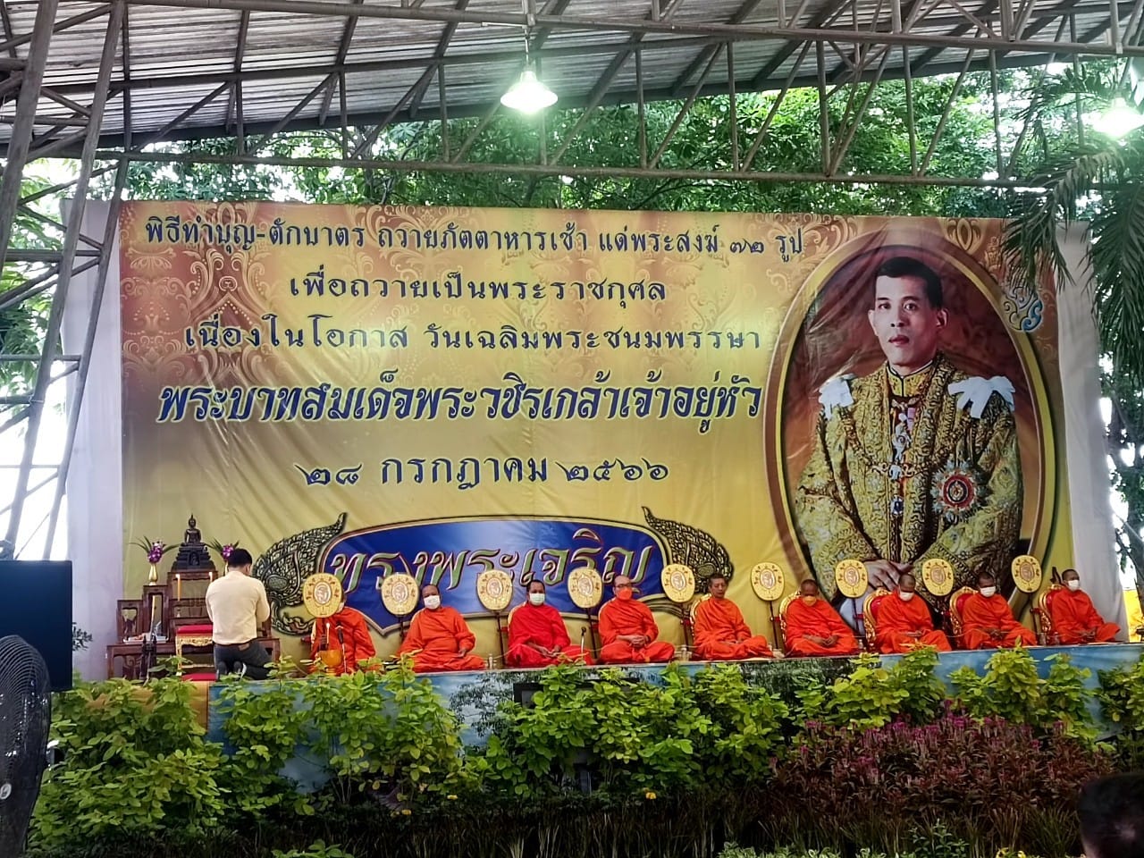 วันที่ 27 กรกฏาคม 2566 นางชงโค สุรเวทวงศ์ภาส ผู้อำนวยการศูนย์ส่งเสริมการเรียนรู้เขตจอมทอง ข้าราชการครู และคณะครู กศน.ตำบล เข้าร่วมพิธีทำบุญตักบาตร ถวายภัตตาหารเช้าแด่พระสงฆ์ เพื่อ เฉลิมพระเกียรติพระบา