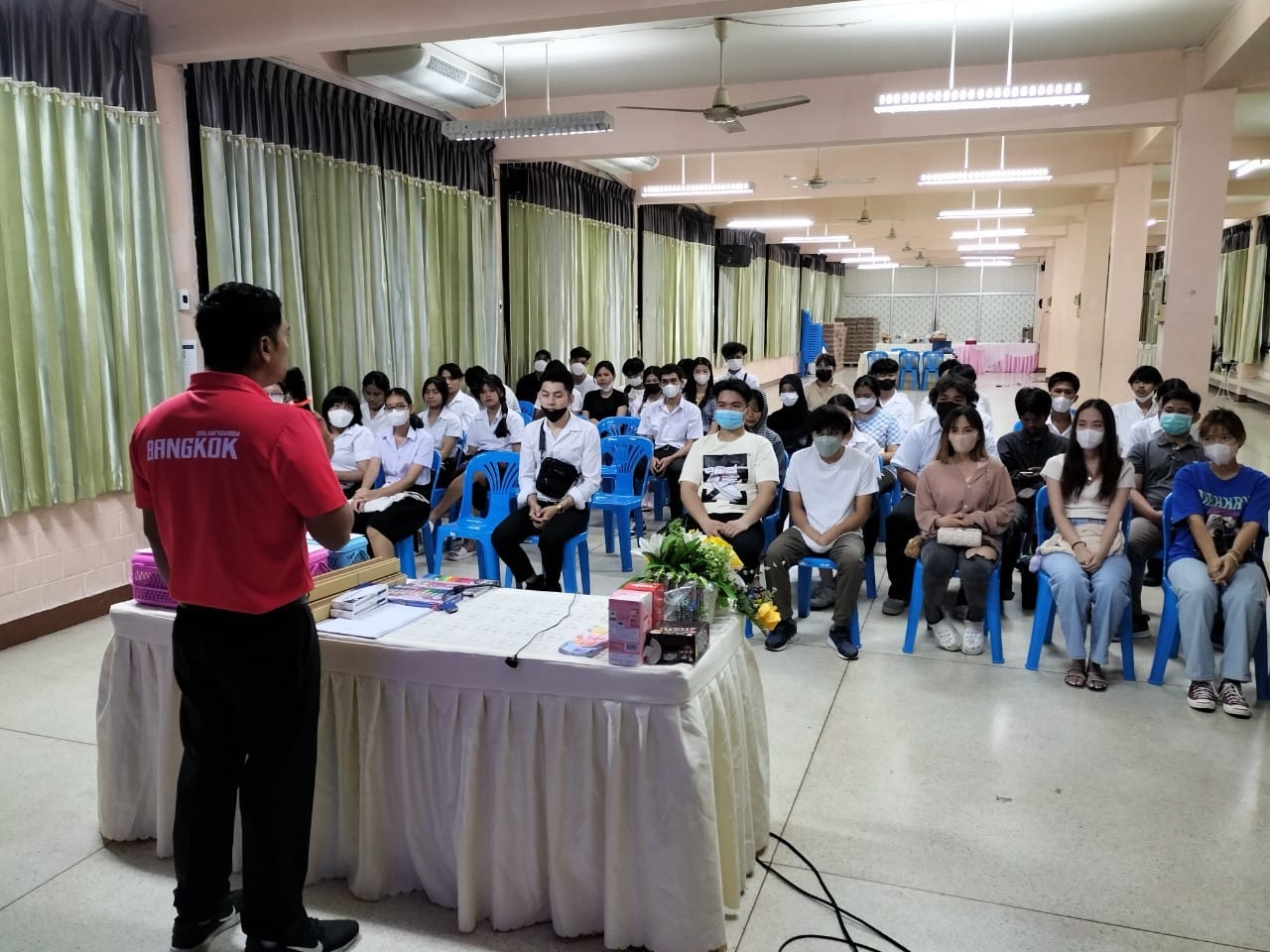 วันอาทิตย์ที่ 6 สิงหาคม 2566 นางชงโค สุรเวทวงศ์ภาส ผู้อำนวยการ กศน.เขตจอมทอง ปฏิบัติหน้าที่ ผู้อำนวยการศูนย์ส่งเสริมการเรียนรู้เขตจอมทอง ได้รับมอบหมายให้ ข้าราชการครู และ คณะครู จัดโครงการอบรมอาสายุ