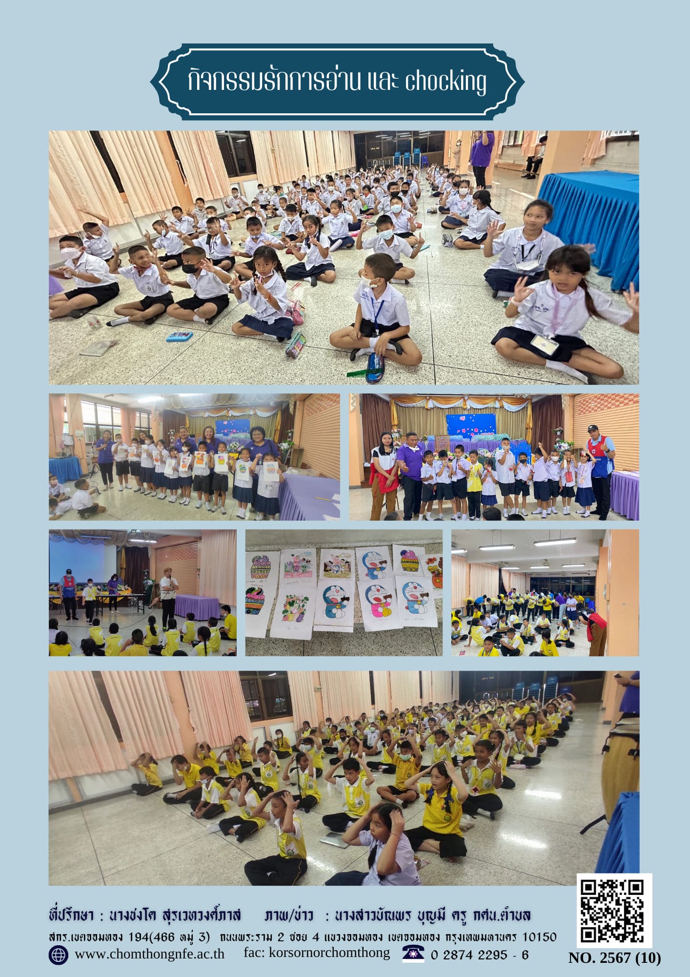 วันที่ 22 มกราคม 2567 นางชงโค สุรเวทวงศ์ภาส ผู้อำนวยการ กศน.เขตจอมทอง ปฏิบัติหน้าที่ ผู้อำนวยการ สกร.เขตจอมทอง มอบหมายให้คณะครู และอาสาสมัครยุวกาชาด ดำเนินการจัดกิจกรรมรักการอ่าน และ chocking (การสำลั