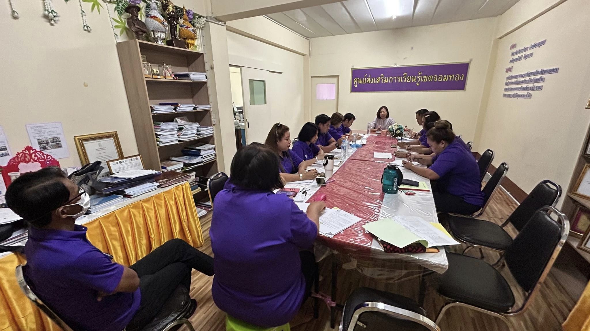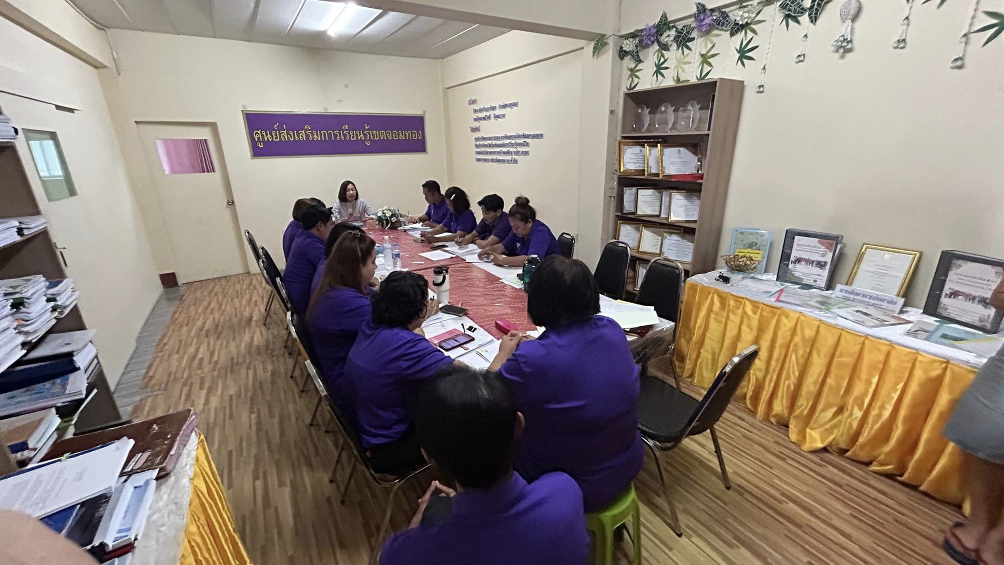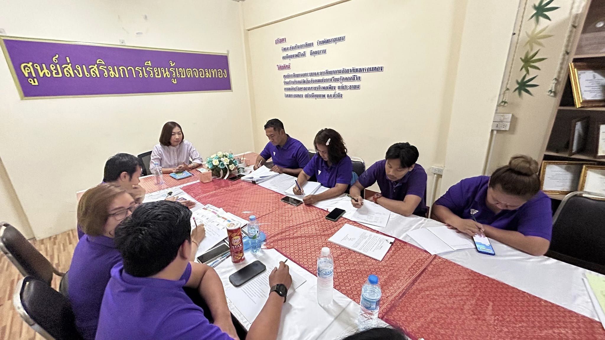 วันที่ 14 กุมภาพันธ์ 2567 นางชงโค สุรเวทวงศ์ภาส ผู้อำนวยการ กศน.เขตจอมทอง ปฏิบัติหน้าที่ ผู้อำนวยการ สกร.เขตจอมทอง ข้าราชการครู และคณะครู ร่วมจัดทำแผนพัฒนาคุณการศึกษา ณ ห้องประชุม สกร.เขตจอมทอง แขวงจอ