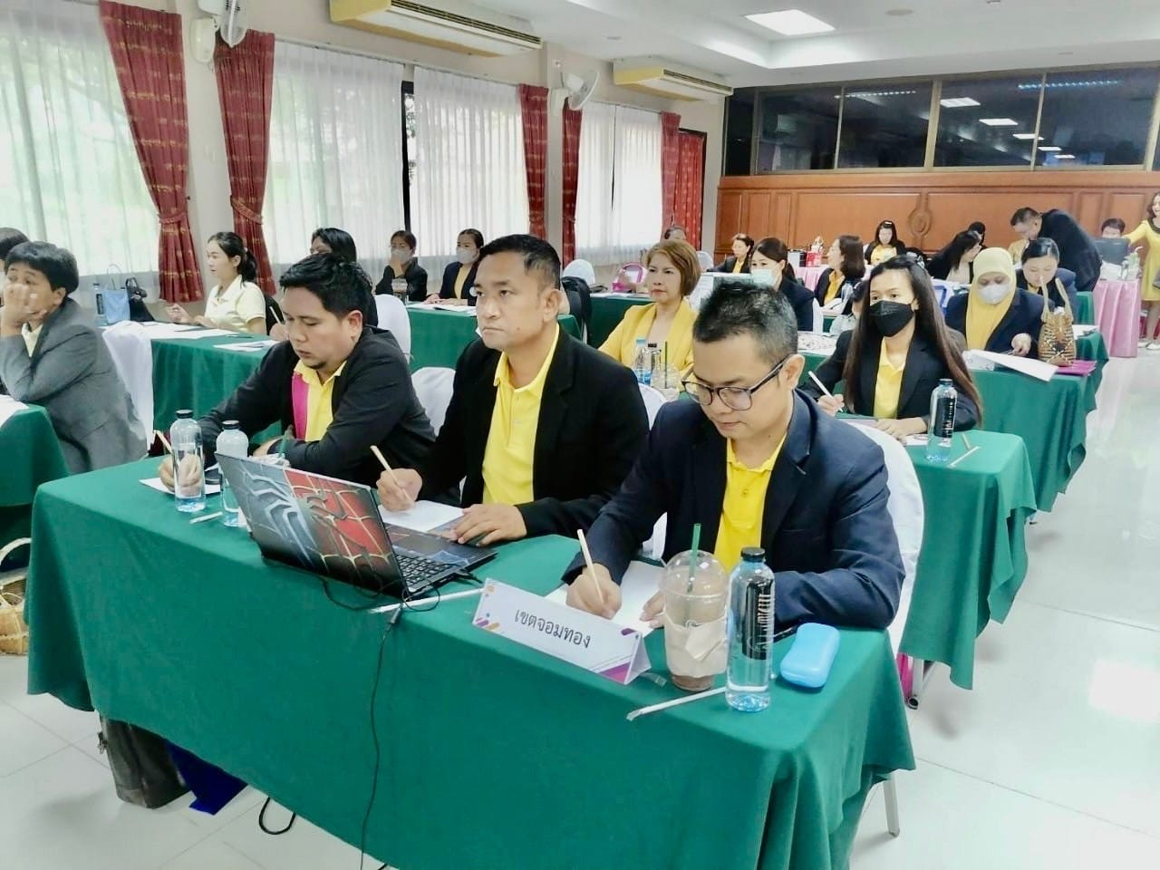 นางชงโค สุรเวทวงศ์ภาส ผู้อำนวยการ กศน.เขตจอมทอง ปฏิบัติหน้าที่ ผู้อำนวยการ สกร.เขตจอมทอง นายนิวัฒน์ จันทร์เทศ ว่าที่ร้อยตรีอุทัย พลมารักษ์ ว่าที่ร้อยตรีศุภโชค สุวรรณวัฒน์ และนางสาวชญาภา ศรีสวัสดิ์ เข้าร่วมโครงการอบรมเชิงปฏิบัติการจัดทำแผนพัฒนาคุณภาพการศึกษาของสถานศึกษาในสังกัดสำนักงานส่งเสริมการเรียนรู้กรุงเทพมหานคร รุ่นที่ 1