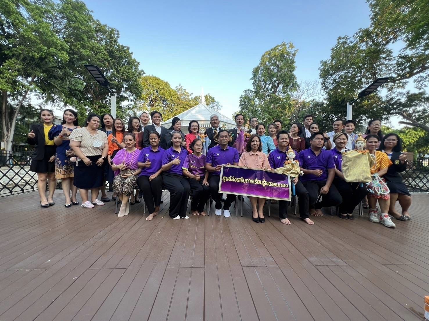 นางชงโค สุรเวทวงศ์ภาส ผู้อำนวยการ กศน.เขตจอมทอง ปฏิบัติหน้าที่ ผู้อำนวยการ สกร.เขตจอมทอง นำคณะครู ร่วมกิจกรรม ดนตรีในสวน "รื่นรมย์ สมฤดี 132 ปีกระทรวงศึกษาธิการ" นำการแสดง “ศิลปะพื้นบ้านสู่ความเป็นเอกลักษณ์ไทย” ร่วมจัดกิจกรรม