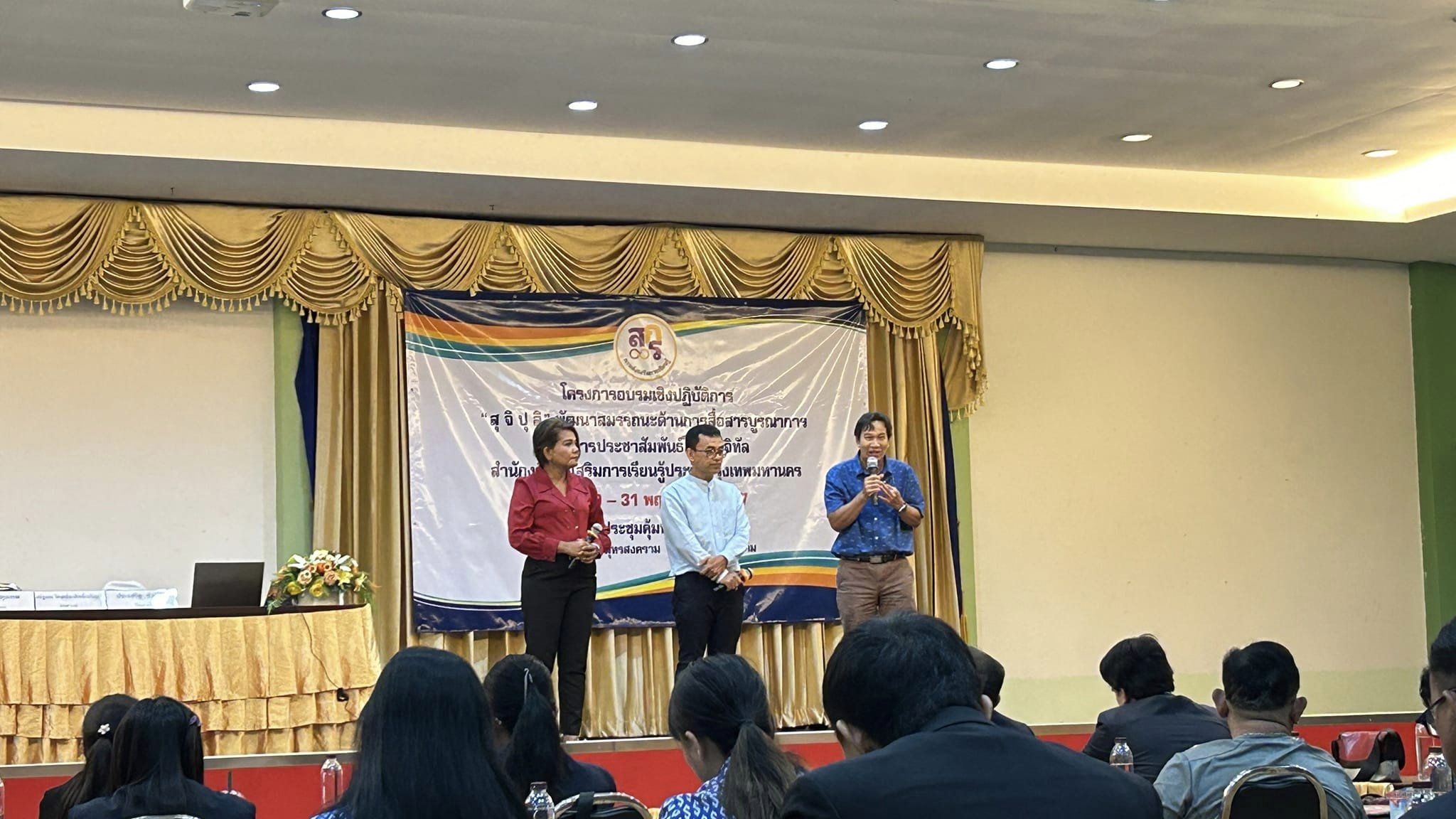 นางชงโค สุรเวทวงศ์ภาส ผู้อำนวยการ กศน.เขตจอมทอง ปฏิบัติหน้าที่ ผู้อำนวยการ สกร.ระดับเขตจอมทอง มอบหมายให้ นางสาวบัณพร บุญมี และนางสาวชญาภา ศรีสวัสดิ์ ครู กศน.ตำบล เข้าร่วมโครงการอบรม “สุ จิ ปุ ลิ“ พัฒนาสมรรถนะการสื่อสารบูรณาการ เพื่อการประชาสัมพันธ์ในยุคดิจิทัล สำนักงานส่งเสริม การเรียนรู้ประจำกรุงเทพมหานคร
