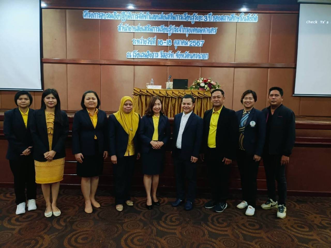 16-18 ตุลาคม 2567 นางชงโค สุรเวทวงศ์ภาส ผู้อำนวยการศูนย์ส่งเสริมการเรียนรู้ระดับเขตจอมทอง นายนิวัฒน์ จันทร์เทศ ว่าที่ ร.ต. อุทัย พลมารักษ์ ข้าราชการครู นางสาวอิงอร เอกนิเล และ ว่าที่ ร.ต.ศุภโชค สุวรรณวัฒน์ ครู กศน.ตำบล เข้าร่วมโครงการอบรมเชิงปฏิบัติการจัดทำแผนส่งเสริมการเรียนรู้ระยะ 3 ปี ของสถานศึกษาในสังกัดสำนักงานส่งเสริมการเรียนรู้ประจำกรุงเทพมหานคร ระหว่างวันที่ 16 - 18 ตุลาคม 2567 ณ โรงแรมอิงธาร รีสอร์ท จังหวัดนครนายก