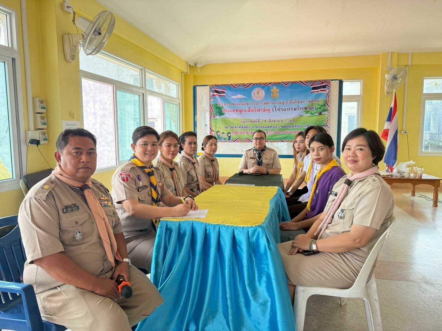 นางชงโค สุรเวทวงศ์ภาส ผู้อำนวยการศูนย์ส่งเสริมการเรียนรู้ระดับเขตจอมทอง มอบหมายให้นางสาวบัณพร บุญมี นางสาวศิริรัตน์ ลีสินลา นายนพรัตน์ อินทรยง นางสาวอิงอร เอกนิล และนางสาวปฐมา ศรีนา จัดโครงการขับเคลื่อนโปรแกรมฝึกอบรมลูกเสือในสถานศึกษา ประเภทลูกเสือวิสามัญ (โปรแกรมรักชาติ) ให้กับนักศึกษา สกร.ระดับเขตจอมทอง เพื่อให้นักศึกษามีความภูมิใจในความเป็นพลเมืองไทยและนำไปสู่การปฏิบัติในชีวิตจริง