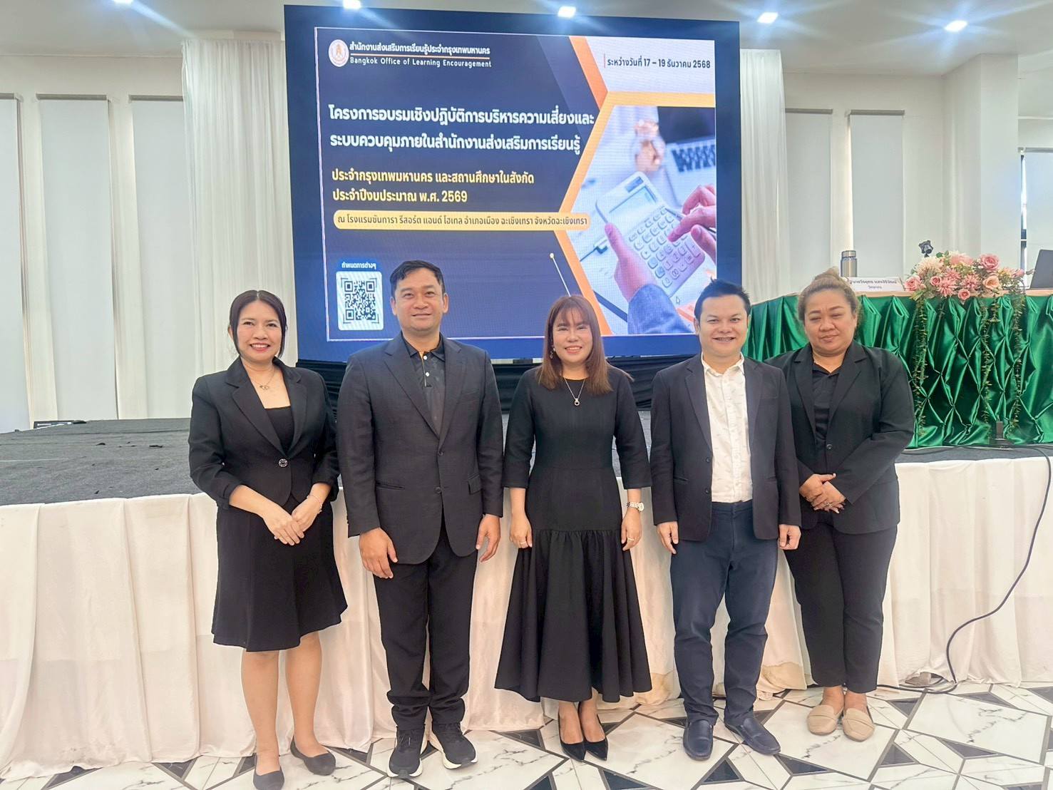 ระหว่างวันที่ 17 - 19 ธันวาคม 2568 นางสาวบุสรา นิลเต๊ะ ผู้อำนวยการศูนย์ส่งเสริมการเรียนรู้ระดับเขตบางบอน รักษาการในตำแหน่งผู้อำนวยการศูนย์ส่งเสริมการเรียนรู้ระดับเขตจอมทอง นำนายนิวัฒน์ จันทร์เทศ ว่าที่ร้อยตรี อุทัย พลมารักษ์ ข้าราชการครู นางสาวฉวีวรรณ หวานฉ่ำ และนางสาวชญาภา ศรีสวัสดิ์ ครูศูนย์การเรียนรู้ เข้าร่วมโครงการอบรมเชิงปฎิบัติการบริหารความเสี่ยงและระบบควมคุมภายในสำนักงานส่งเสริมการเรียนรู้ประจำกรุงเทพมหานคร และสถาบันการศึกษาในสังกัด ประจำปีงบประมาณ พ.ศ. 2568 ณ โรงแรมซันทารา รีสอร์ท แอนด์โฮเทล อำเภอเมือง จังหวัดฉะเชิงเทรา