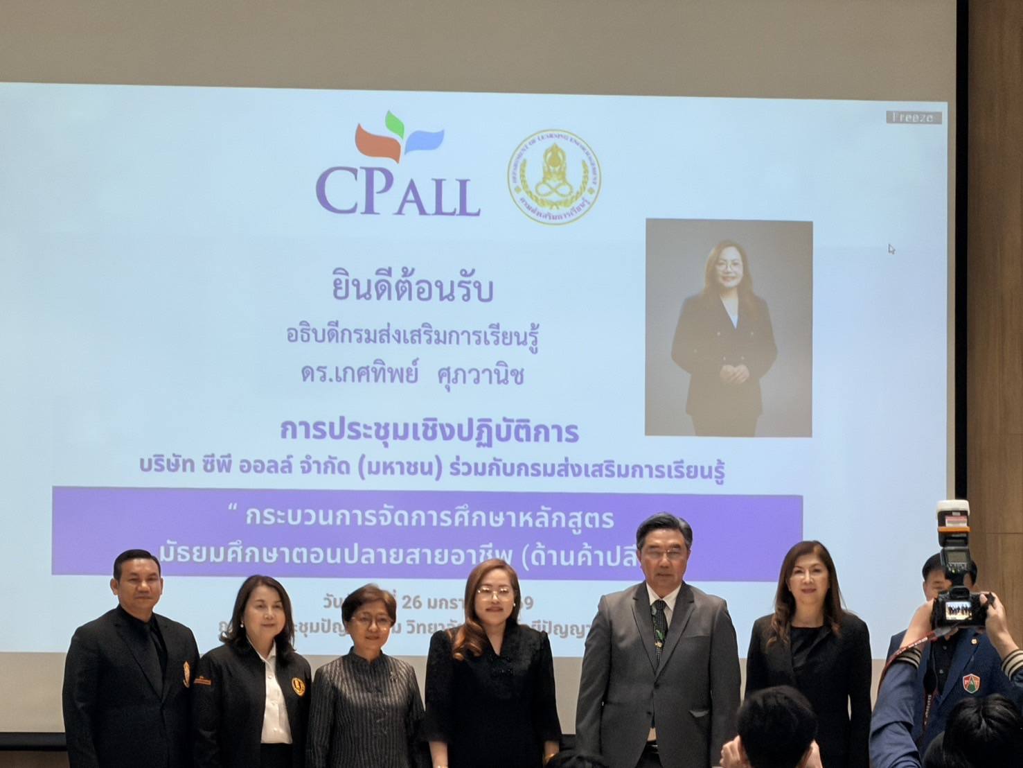 26 มกราคม 2569นางสาวบุสรา นิลเต๊ะ ผู้อำนวยการศูนย์ส่งเสริมการเรียนรู้ระดับเขตบางบอน รักษาการในตำแหน่ง ผู้อำนวยการศูนย์ส่งเสริมการเรียนรู้ระดับ เขตจอมทอง ว่าที่ร้อยตรีอุทัย พลมารักษ์ ข้าราชการครู และว่าที่ร้อยตรีศุภโชค สุวรรณวัฒน์ ครูศูนย์การเรียนรู้ เข้าร่วมประชุมเชิงปฏิบัติการเรื่อง “แนวปฏิบัติในการจัดทำผลสัมฤทธิ์ทางการศึกษาหลักสูตรมัธยมศึกษาตอนปลายแผนค้าปลีก และกระบวนการที่เกี่ยวข้อง” ณ ห้องประชุมปัญญางาม ชั้น 5 วิทยาลัยเทคโนโลยีปัญญาภิวัฒน์ จังหวัดนนทบุรี