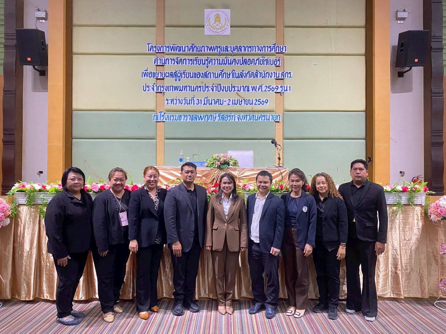 ระหว่างวันที่ 31 มีนาคม 2569 ถึง วันที่ 2 เมษายน 2569 นางสาวบุสรา นิลเต๊ะ ผู้อำนวยการศูนย์ส่งเสริมการเรียนรู้ระดับเขตบางบอน รักษาการในตำแหน่ง ผู้อำนวยการศูนย์ส่งเสริมการเรียนรู้ระดับเขตจอมทอง นายนิวัฒน์ จันทร์เทศ ข้าราชการครู ร่วมเป็นวิทยากรโครงการฯ ว่าที่ ร้อยตรีอุทัย พลมารักษ์ ข้าราชการครู นางสาวฉวัวรรณ หวานฉ่ำ นางสาวปฐมา ศรีนา นางสาวสุนารี ศรีรัตน์ นางศิริพร วงษ์บุญส่ง นางสาวศิริรัตน์ ลีสินลา และว่าที่ร้อยตรี ศุภโชค สุวรรณวัฒน์ เข้าอบรม โครงการพัฒนาศักยภาพครูและบุคลากรทางการศึกษาเ้านการจัดการเรียนรู้ความมั่นคงปลอดภัยไซเบอร์เพื่อขยายผลสู่ผู้เรียนของสถานศึกษาในสังกัดสำนักงาน สกร.ประจำกรุงเทพมหานครประจำปีงบประมาณ พ.ศ.2569 รุ่นที่ 1 ระหว่างวันที่ 31 มีนาคม 2569 ถึง วันที่ 2 เมษายน 2569 ณ โรงแรมธาราชลพฤกษ์ รีสอร์ท จังหวัดนครนายก