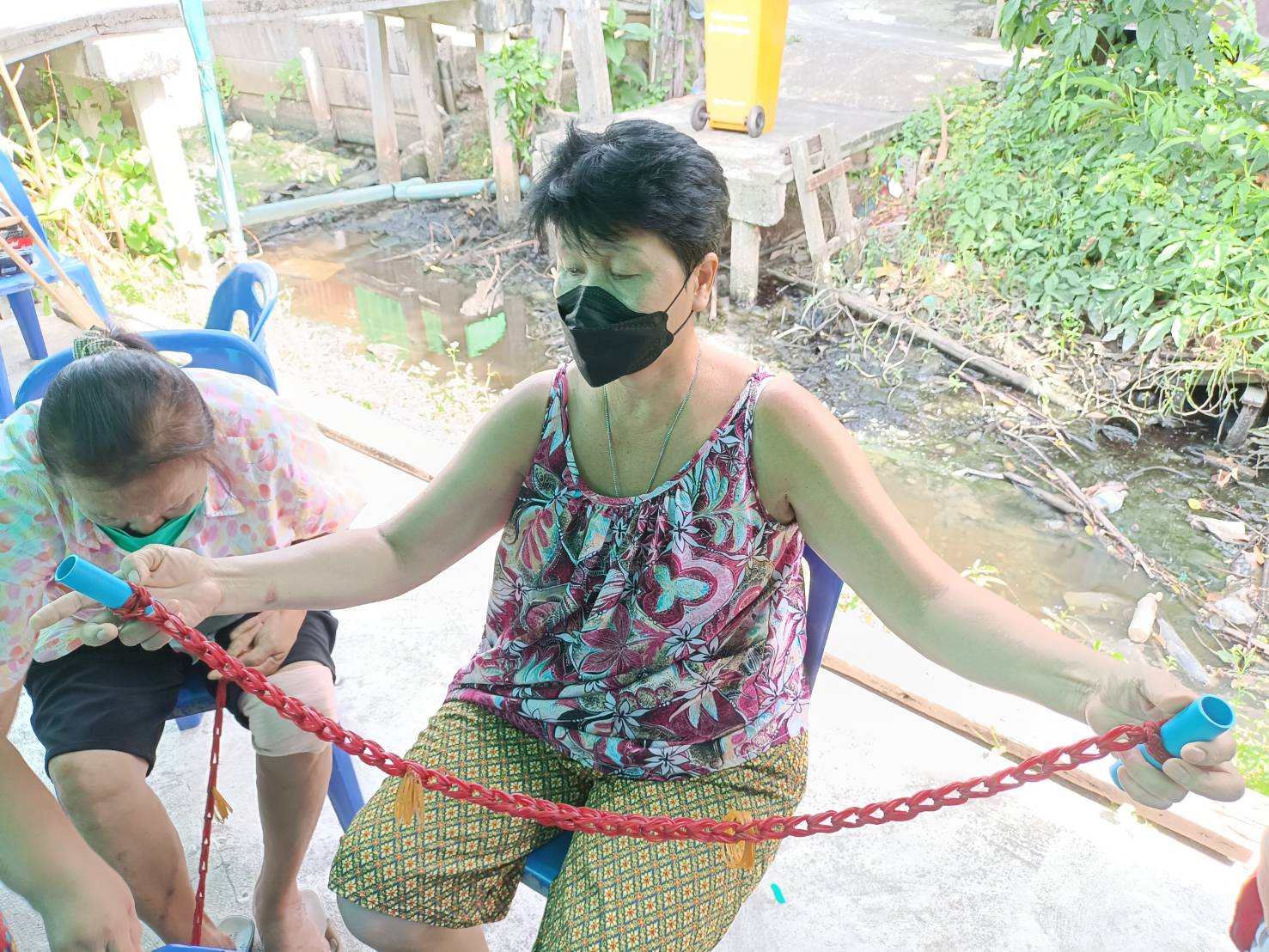 วันที่ 1 กรกฎาคม 65 นางสาวบุสรา นิลเต๊ะ ผู้อำนวยการ กศน.เขตบางบอน รักษาการในตำแหน่งผู้อำนวยการ กศน.เขตจอมทอง ได้มอบหมายให้คณะครู กศน.เขตจอมทอง พร้อมด้วยนักศึกษาฝึกประสบการณ์ จัดกิจกรรมโครงการผู้สูงวัย รักษ์วัฒนธรรมไทย ใส่ใจสุขภาพ ได้นำผู้สูงวัยออกกำลังกายด้วยหนังยาง ณ ชุมชุนสามง่าม เขตจอมทอง กรุงเทพฯ
