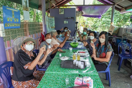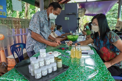 ม่วงศรี ครู กศน.ตำบล กศน.เขตจอมทอง จัดอาชีพกลุ่มสนใจ ไม่เกิน 30 ชั่วโมง การทำยาหม่องสมุนไพร เพื่อให้ผู้เข้าร่วมอบรมมีความรู้และกระบวนการทำและสามารถต่อยอดในการสร้างรายได้สู่ครอบครัวและชุมชน ณ ศูนยืบริการและถ่ายทอดเทคโนโลยีการเกตร แขวงบางขุนเทียน เขตจอมทอง กรุงเทพฯ