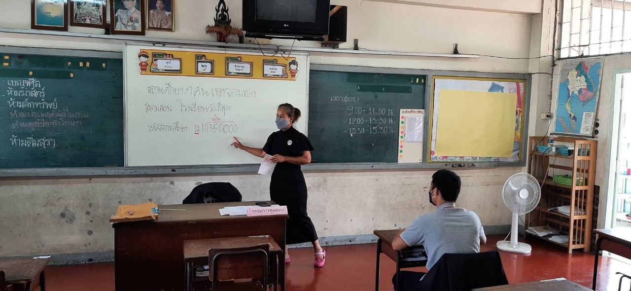 มอบหมายให้ข้าราชการครู และนางสาวบัณพร บุญมี ครู กศน.ตำบล ดำเนินการจัดการสอบมิติความรู้ความคิดให้กับผู้ประเมินเทียบระดับการศึกษาขั้นพื้นฐาน ครั้งที่1 ปีการศึกษา 2565 ณ โรงเรียนวัดสีสุก แขวงจอมทอง เขตจอมทอง กรุงเทพมหานคร