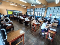 วันที่ 18 กันยายน 2565 นางสาวบุสรา นิลเต๊ะ ผู้อำนวยการ กศน.เขตบางบอน รักษาการในตำแหน่งผู้อำนวยการ กศน.เขตจอมทอง ได้มอบหมายให้คณะครู กศน.เขตจอมทอง ดำเนินการสอบปลายภาค (ภาคเรียนที่ 1 ปีการศึกษา 2565) ระดับประถมศึกษา มัธยมศึกษาตอนต้น มัธยมศึกษาตอนปลาย ในระหว่างวันที่ 17 - 18 กันยายน 2565 โดยมีท่านผู้อำนวยการ สำนักงาน กศน.กทม.เดินทางมาตรวจเยี่ยมให้กำลังใจ ณ โรงเรียนบางมดวิทยา (สีสุกหวาดจวนอุปถัมภ์) เขตจอมทอง กรุงเทพฯ