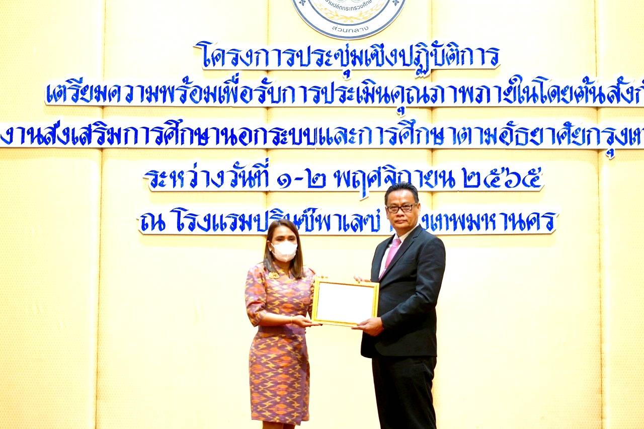 2. กศน.ตำบลต้นแบบ ๕ ดี พรีเมี่ยม ระดับอำเภอ/เขต ประจำปีพุทธศักราช ๒๕๖๕ แก่ กศน.แขวงบางมด เขตจอมทอง กรุงเทพมหานคร ณ โรงแรมปรินซ์พาเลซ กรุงเทพมหานคร