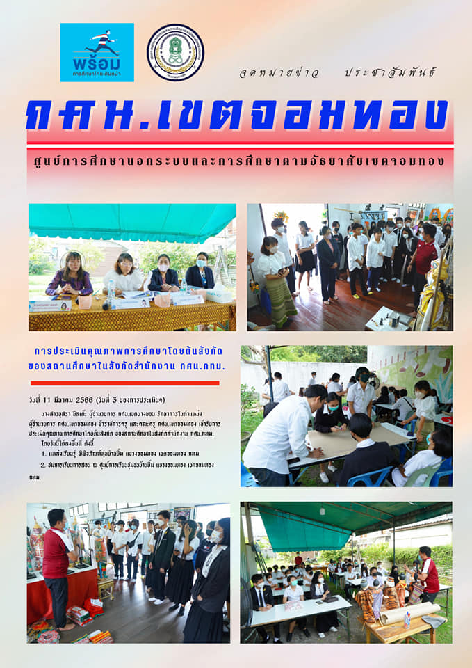 วันที่ 11 มีนาคม 2566 (วันที่ 3 ของการประเมินฯ) นางสาวบุสรา นิลเต๊ะ ผู้อำนวยการ กศน.เขตบางบอน รักษาการในตำแหน่ง ผู้อำนวยการ กศน.เขตจอมทอง ข้าราชการครู และคณะครูกศน.เขตจอมทอง เข้ารับการประเมินคุณภ