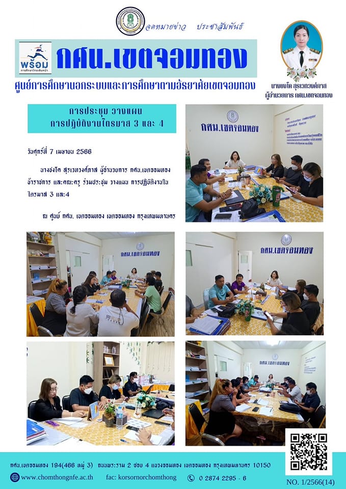 วันศุกร์ที่ 7 เมษายน 2566 นางชงโค สุรเวทวงศ์ภาส ผู้อำนวยการ กศน.เขตจอมทอง ข้าราชการ และคณะครู