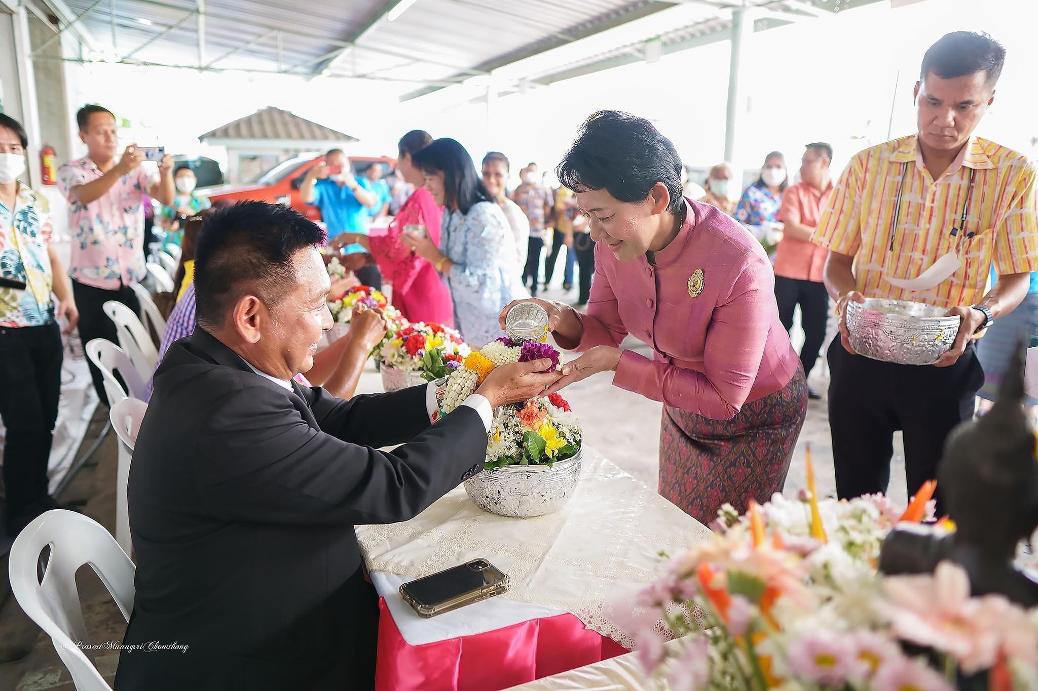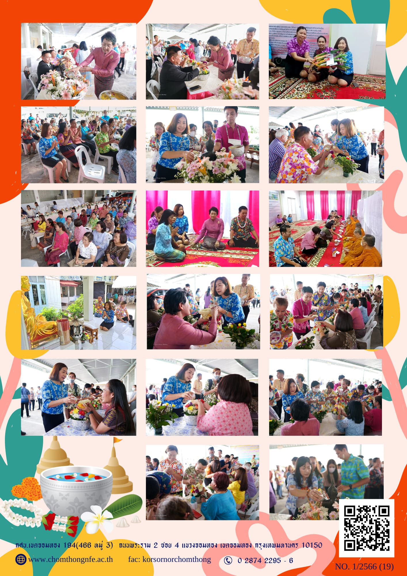 นศุกร์ที่ 21 เมษายน 2566 นางชงโค สุรเวทวงศ์ภาส ผู้อำนวยการ กศน.เขตจอมทอง ข้าราชการ และคณะครู เข้าร่วมกิจกรรมอนุรักษ์และสืบสานวัฒนธรรม ประเพณีไทย เนื่องในวันสงกรานต์ วันผู้สูงอายุ และวันครอบครัว ณ สํ