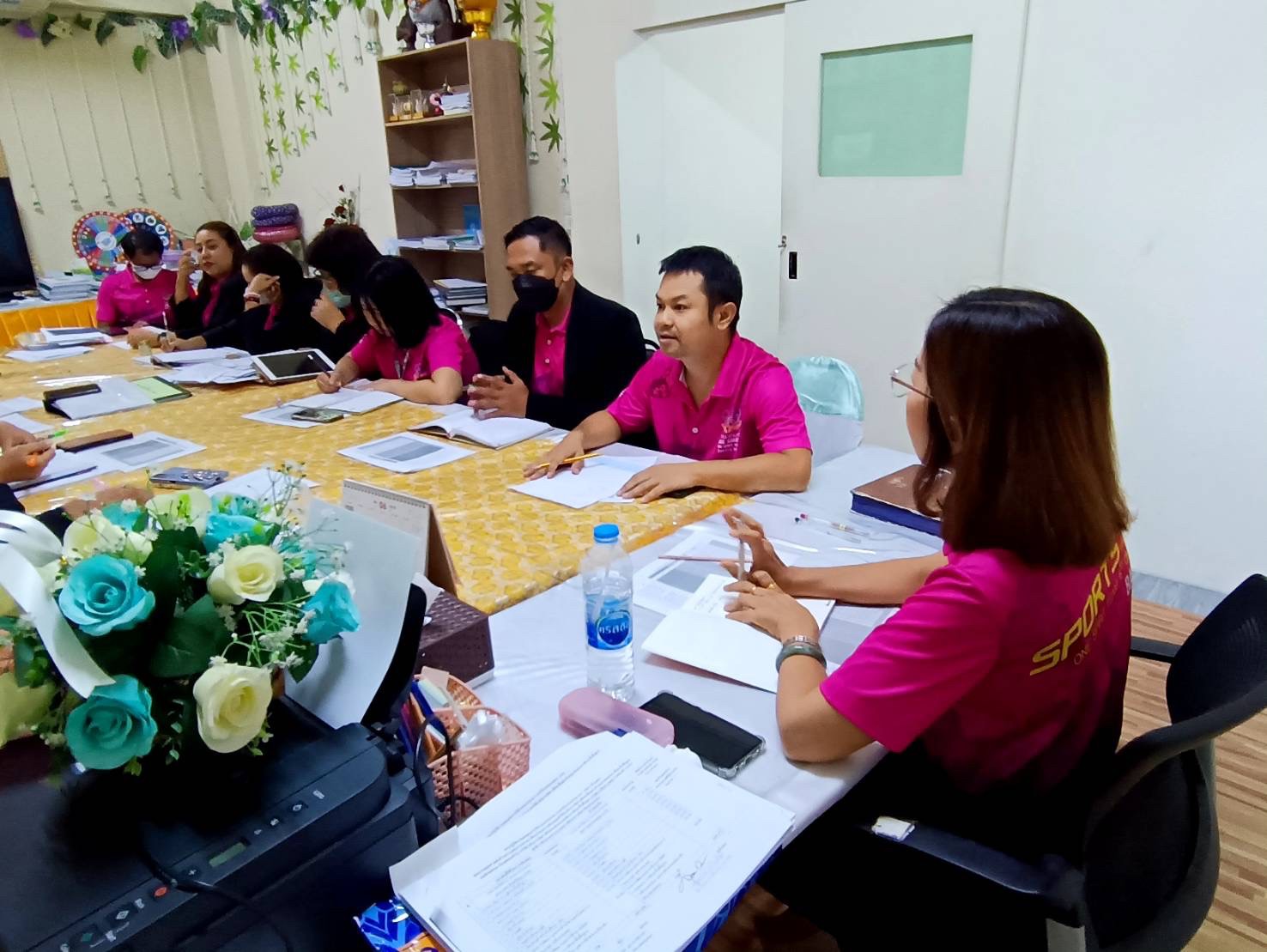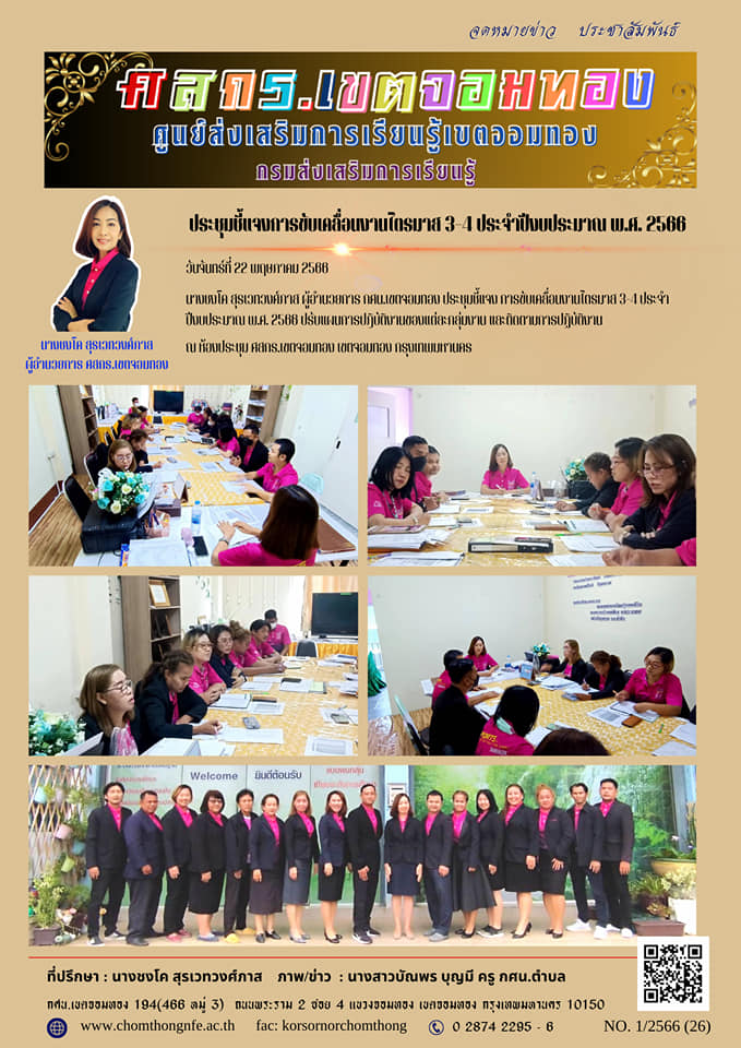 วันจันทร์ที่ 22 พฤษภาคม 2566 นางชงโค สุรเวทวงศ์ภาส ผู้อำนวยการ กศน.เขตจอมทอง ประชุมชี้แจง การขับเคลื่อนงานไตรมาส 3-4 ประจำปีงบประมาณ พ.ศ. 2566 ปรับแผนการปฎิบัติงานของแต่ละกลุ่มงาน และติดตามการปฏิบัติง