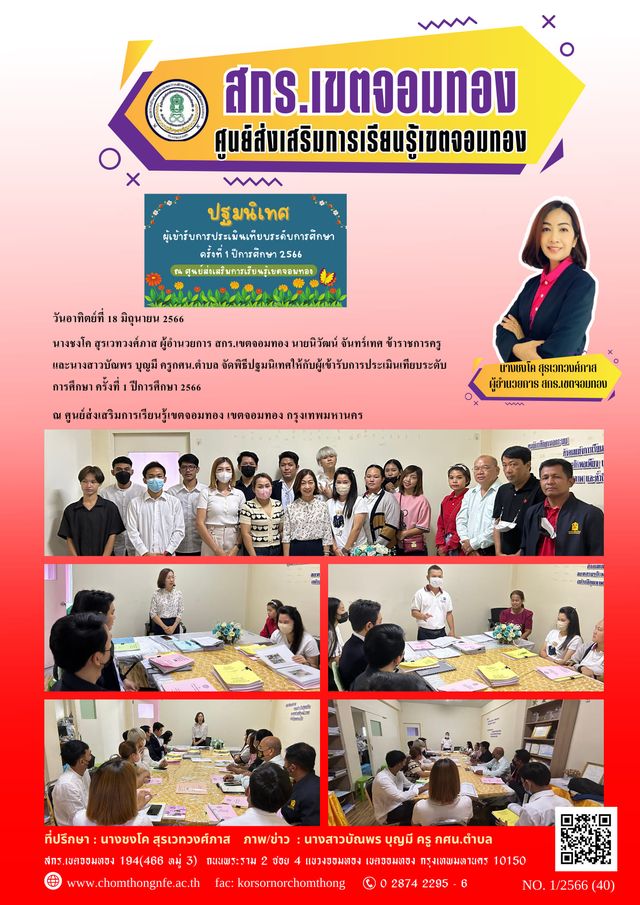 วันอาทิตย์ที่ 18 มิถุนายน 2566 นางชงโค สุรเวทวงศ์ภาส ผู้อำนวยการ สกร.เขตจอมทอง นายนิวัฒน์ จันทร์เทศ ข้าราชการครู และนางสาวบัณพร บุญมี ครูกศน.ตำบล จัดพิธีปฐมนิเทศให้กับผู้เข้ารับการประเมินเทียบระดับ ก