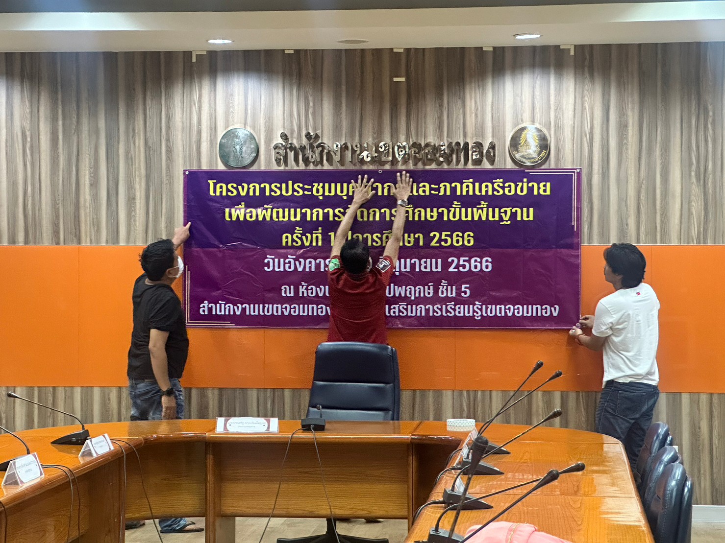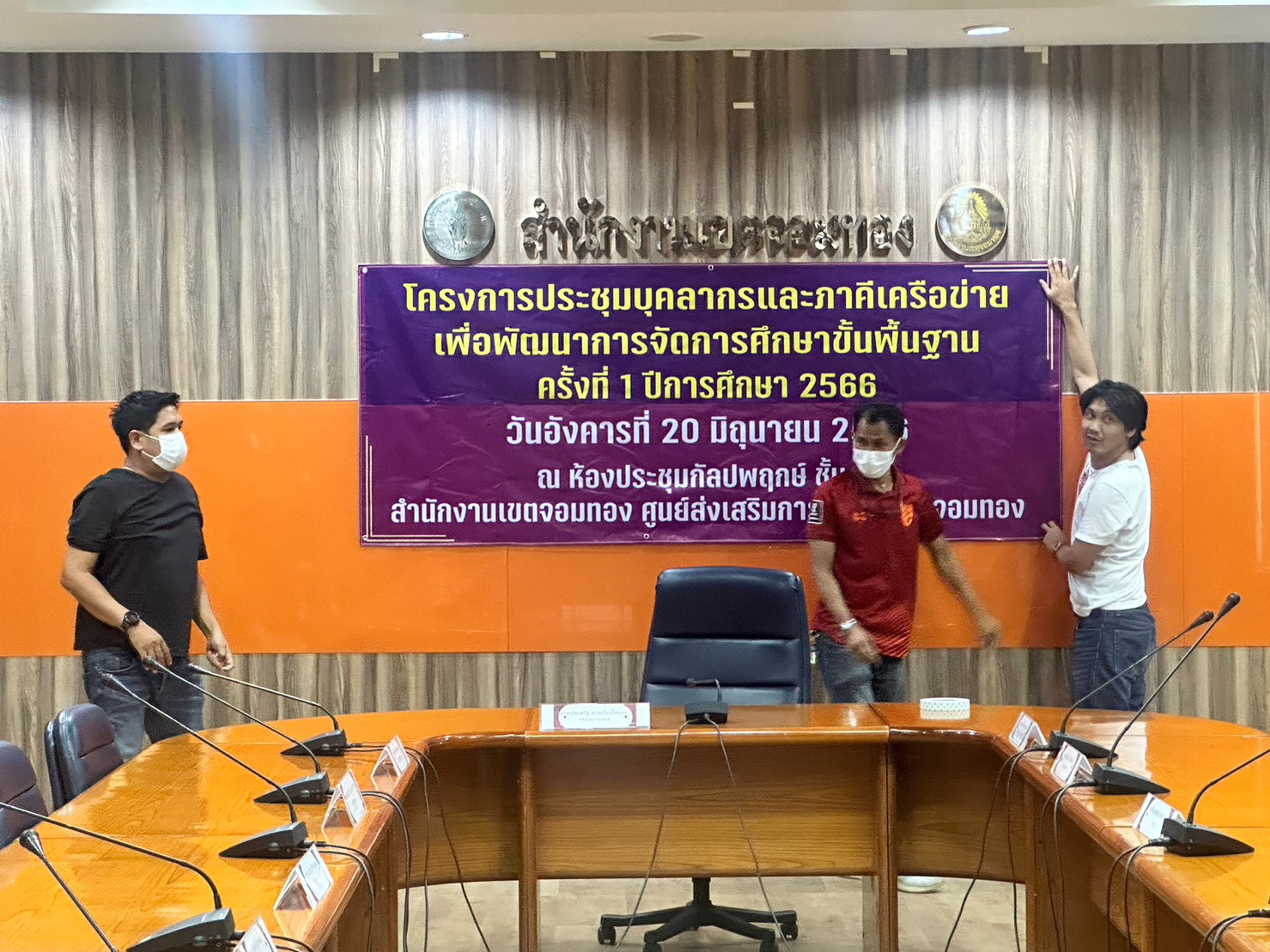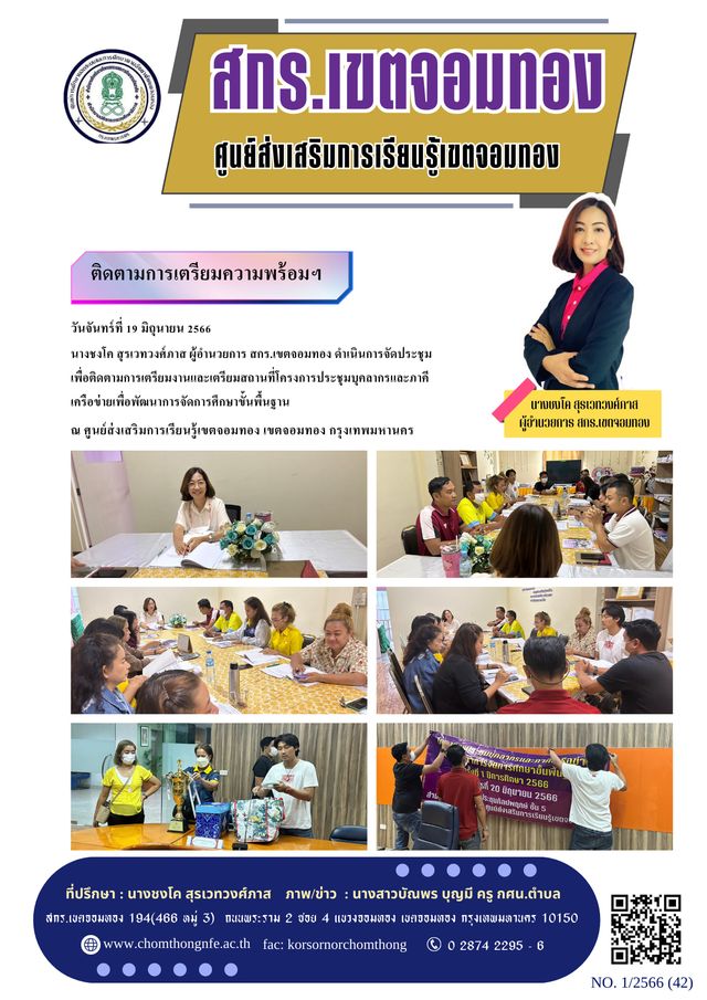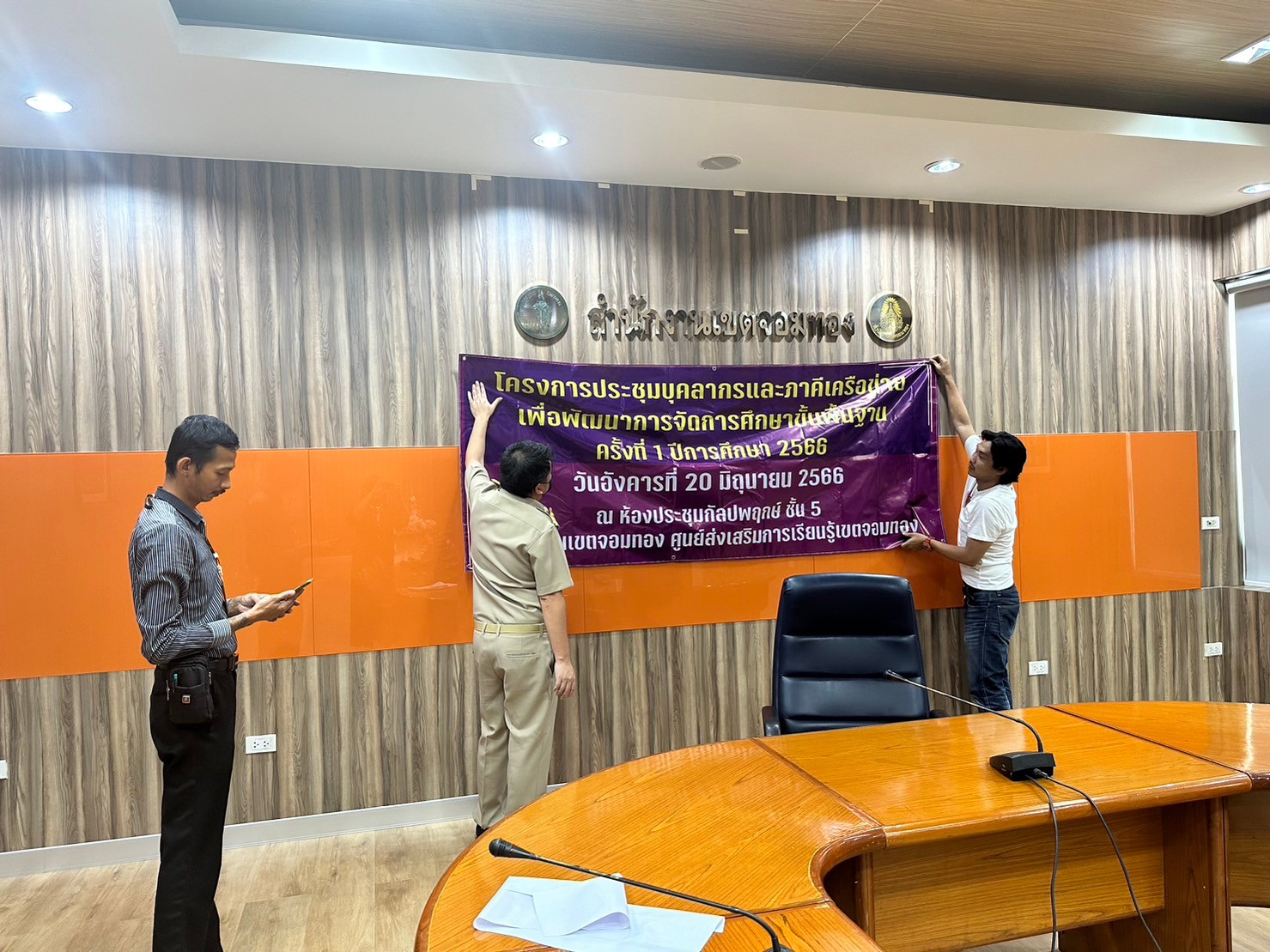 วันจันทร์ที่ 19 มิถุนายน 2566 นางชงโค สุรเวทวงศ์ภาส ผู้อำนวยการ สกร.เขตจอมทอง ดำเนินการจัดประชุม เพื่อติดตามการเตรียมงานและเตรียมสถานที่โครงการประชุมบุคลากรและภาคีเครือข่ายเพื่อพัฒน