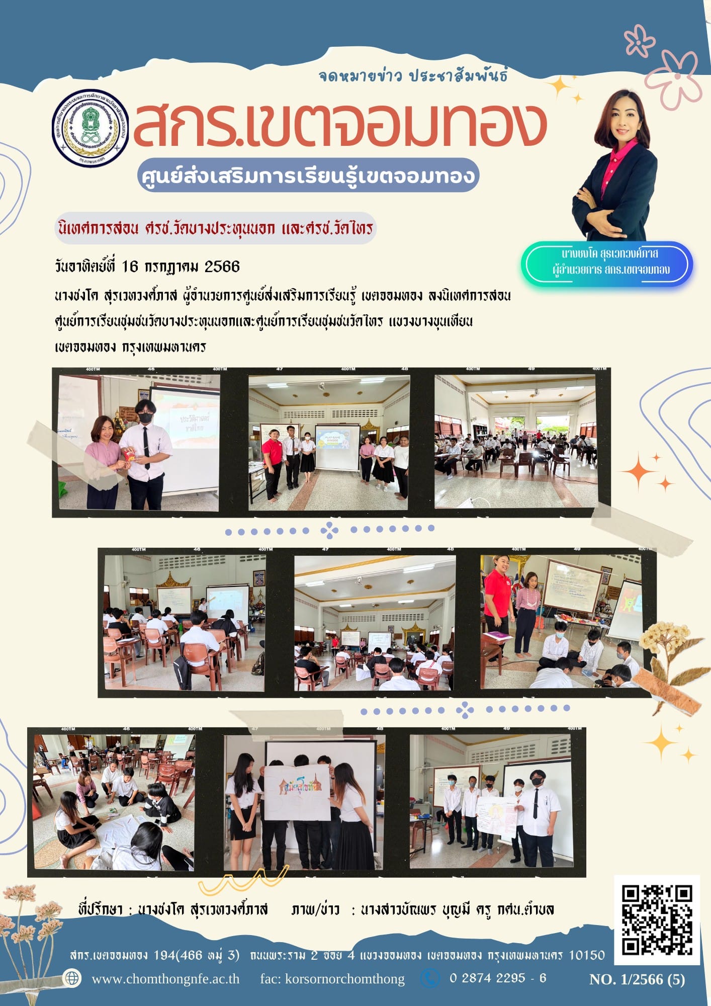 วันที่ 16 กรกฎาคม 2566 นางชงโค สุรเวทวงศ์ภาส ผู้อำนวยการศูนย์ส่งเสริมการเรียนรู้ เขตจอมทอง ลงนิเทศกา