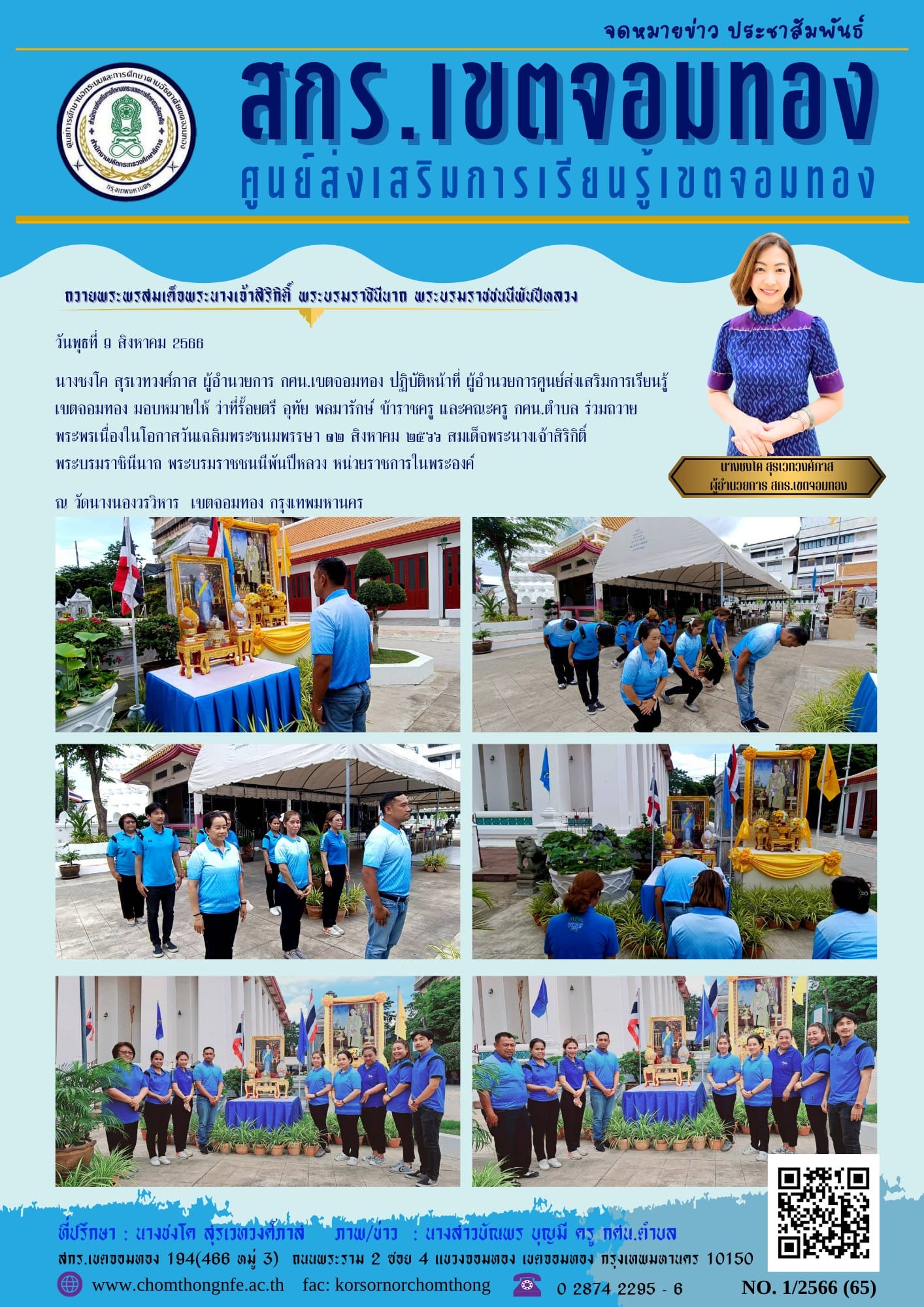 วันพุธที่ 9 สิงหาคม 2566 นางชงโค สุรเวทวงศ์ภาส ผู้อำนวยการ กศน.เขตจอมทอง ปฏิบัติหน้าที่ ผู้อำนวยการศูนย์ส่งเสริมการเรียนรู้เขตจอมทอง มอบหมายให้ ว่าที่ร้้อยตรี อุทัย พลมารักษ์ ข้าราชครู และคณะครู กศน.ต