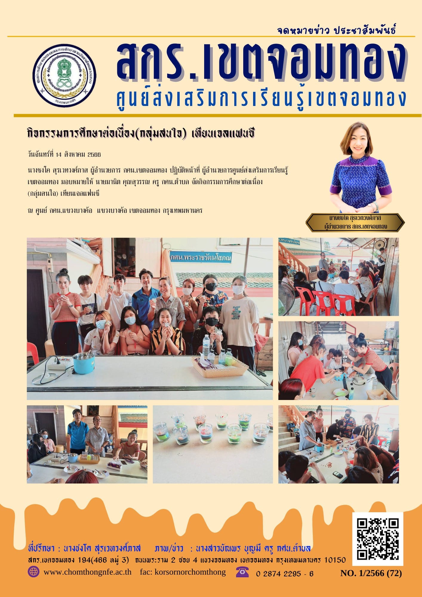 วันจันทร์ที่ 14 สิงหาคม 2566 นางชงโค สุรเวทวงศ์ภาส ผู้อำนวยการ กศน.เขตจอมทอง ปฏิบัติหน้าที่ ผู้อำนวยการศูนย์ส่งเสริมการเรียนรู้เขตจอมทอง มอบหมายให้ นายมานิต คุณสุวรรณ ครู กศน.ตำบล จัดกิจกรรมการศึกษาต่