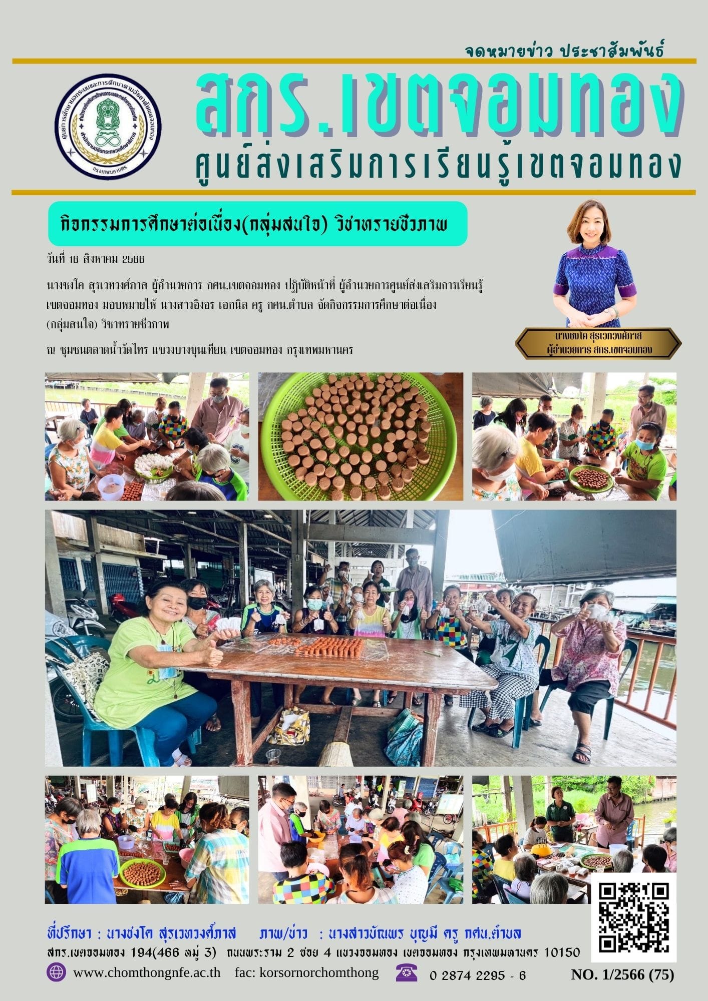 วันที่ 16 สิงหาคม 2566 นางชงโค สุรเวทวงศ์ภาส ผู้อำนวยการ กศน.เขตจอมทอง ปฏิบัติหน้าที่ ผู้อำนวยการศูนย์ส่งเสริมการเรียนรู้เขตจอมทอง มอบหมายให้ นางสาวอิงอร เอกนิล ครู กศน.ตำบล จัดกิจกรรมการศึกษาต่อเนื่อ