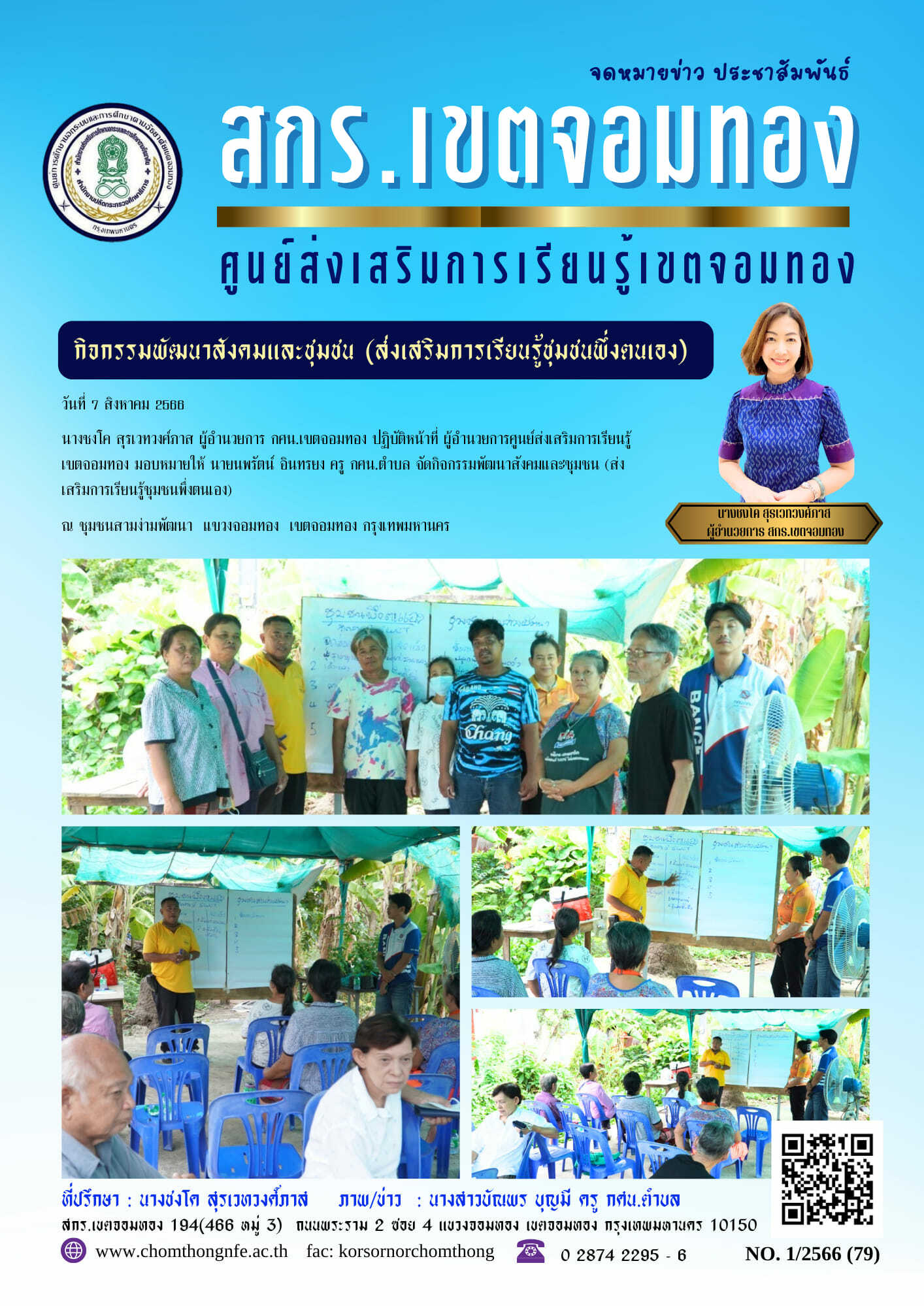วันที่ 7 สิงหาคม 2566 นางชงโค สุรเวทวงศ์ภาส ผู้อำนวยการ กศน.เขตจอมทอง ปฏิบัติหน้าที่ ผู้อำนวยการศูนย