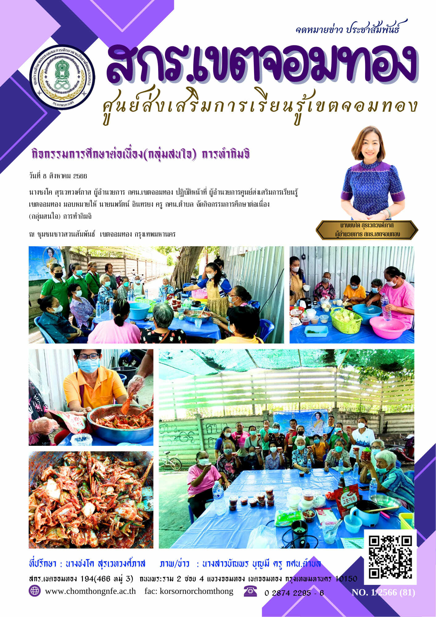 วันที่ 8 สิงหาคม 2566 นางชงโค สุรเวทวงศ์ภาส ผู้อำนวยการ กศน.เขตจอมทอง ปฏิบัติหน้าที่ ผู้อำนวยการศูนย