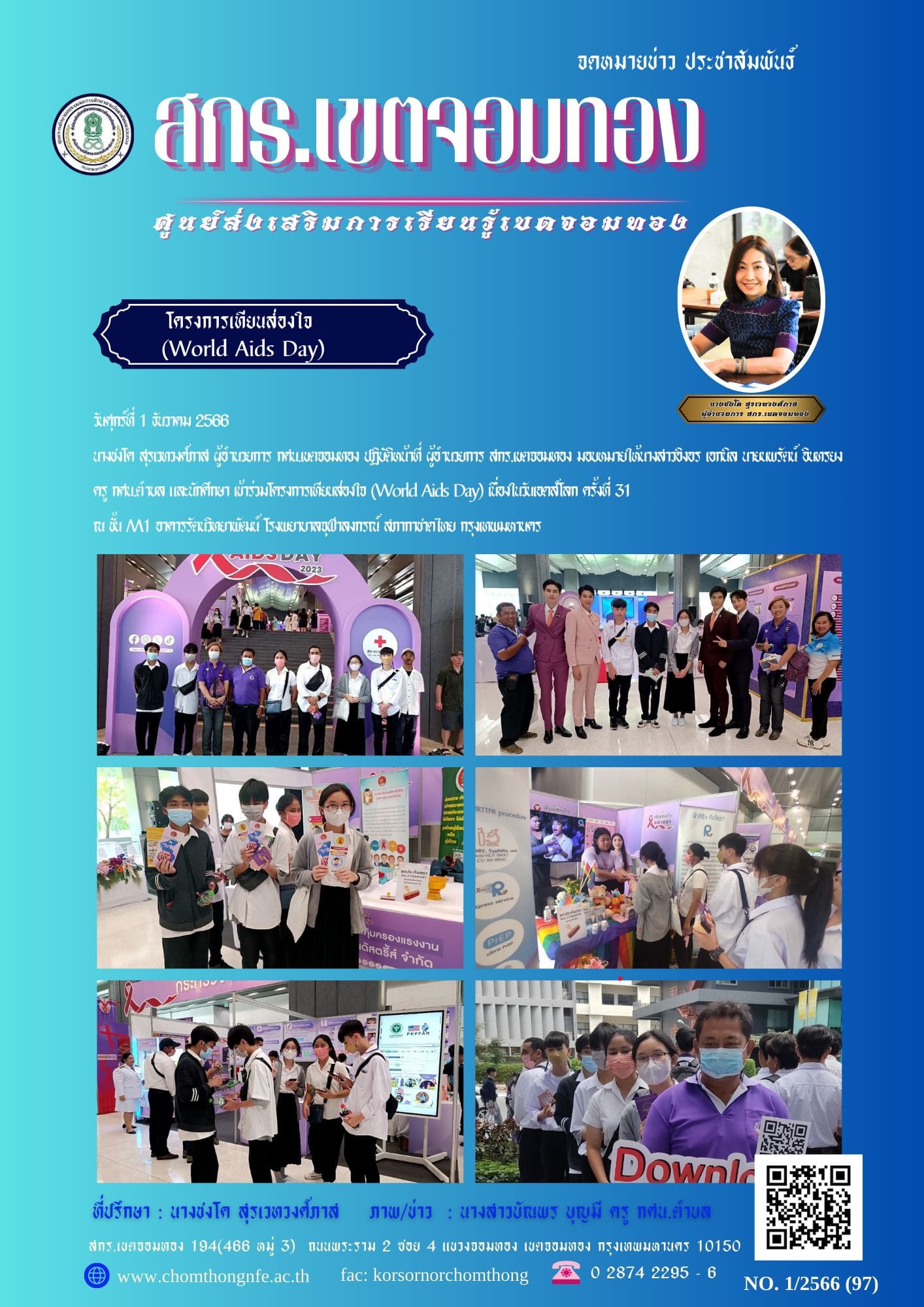 วันศุกร์ที่ 1 ธันวาคม 2566 นางชงโค สุรเวทวงศ์ภาส ผู้อำนวยการ กศน.เขตจอมทอง ปฏิบัติหน้าที่ ผู้อำนวยกา