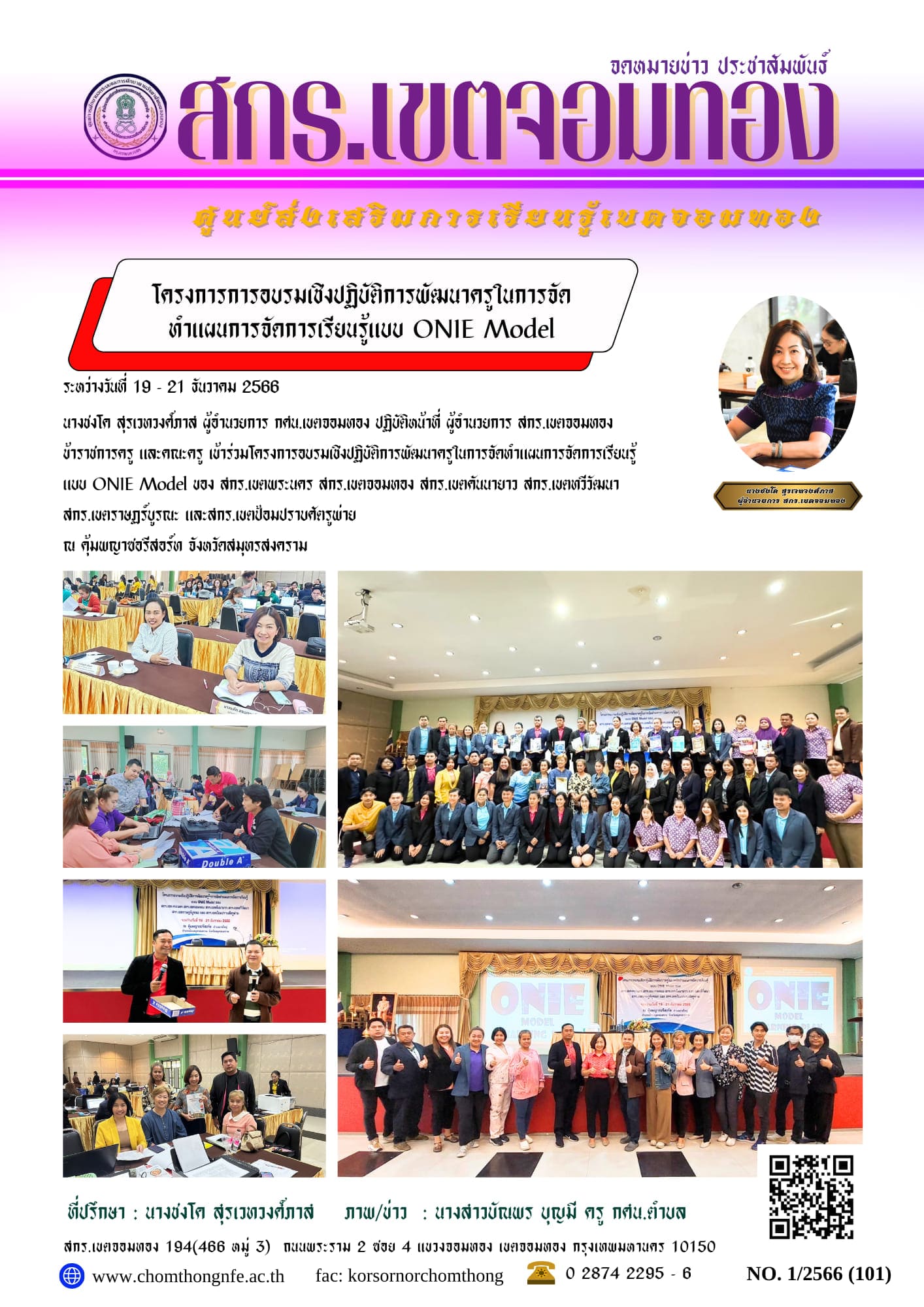 ระหว่างวันที่ 19 - 21 ธันวาคม 2566 นางชงโค สุรเวทวงศ์ภาส ผู้อำนวยการ กศน.เขตจอมทอง ปฏิบัติหน้าที่ ผู้อำนวยการ สกร.เขตจอมทอง ข้าราชการครู และคณะครู เข้าร่วมโครงการอบรมเชิงปฏิบัติการพัฒนาครูในการจัดทำแผ
