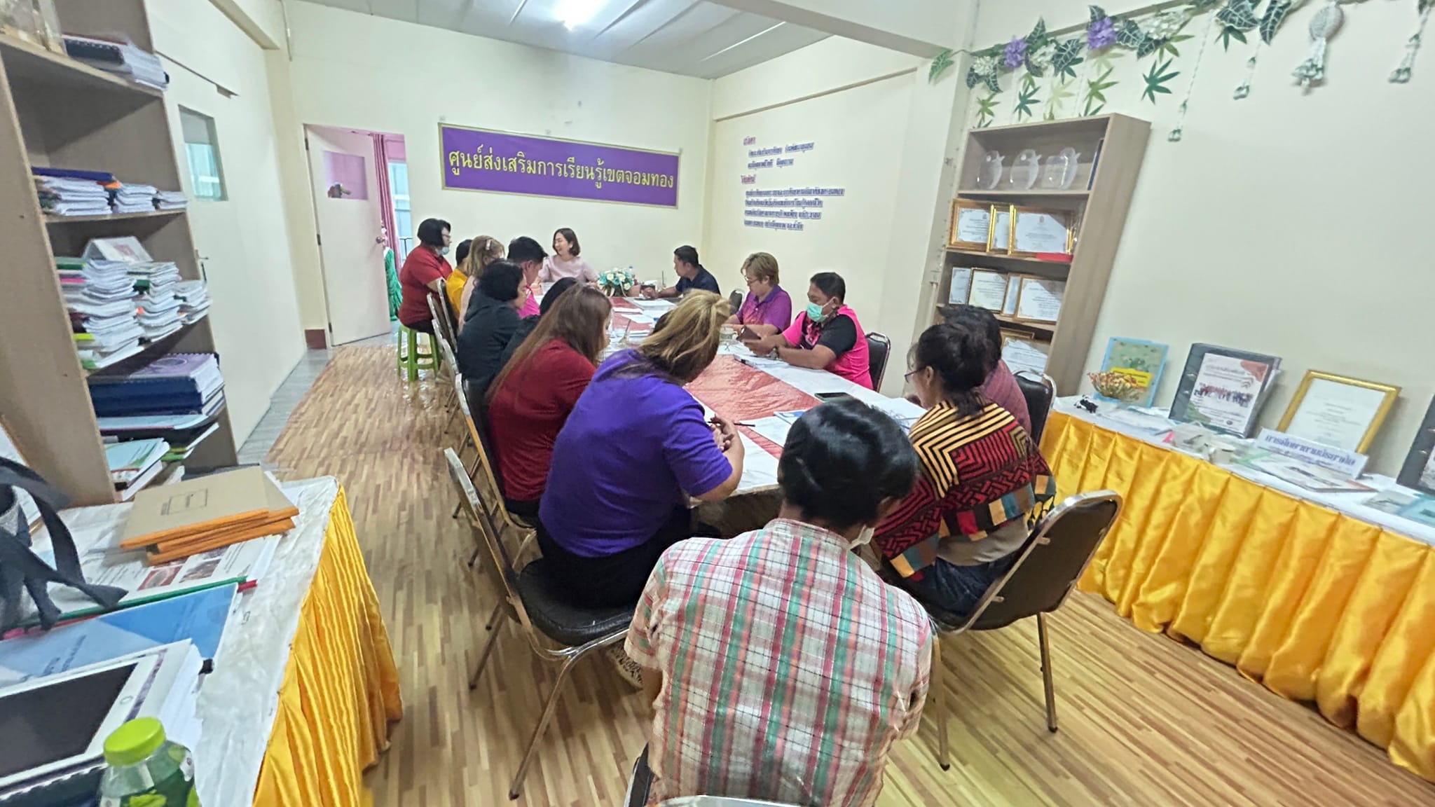 วันที่ 9 มกราคม 2567 นางชงโค สุรเวทวงศ์ภาส ผู้อำนวยการ กศน.เขตจอมทอง ปฏิบัติหน้าที่ ผู้อำนวยการ สกร.เขตจอมทอง ข้าราชการ และคณะครู ดำเนินการประชุมประจำเดือนมกราคม 2567 เพื่อวางแผนการปฏิบัติงาน ณ ศูนย