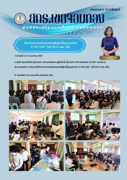ระหว่างวันที่ 13-14 มกราคม 2567 นางชงโค สุรเวทวงศ์ภาส ผู้อำนวยการ กศน.เขตจอมทอง ปฏิบัติหน้าที่ ผู้อำ